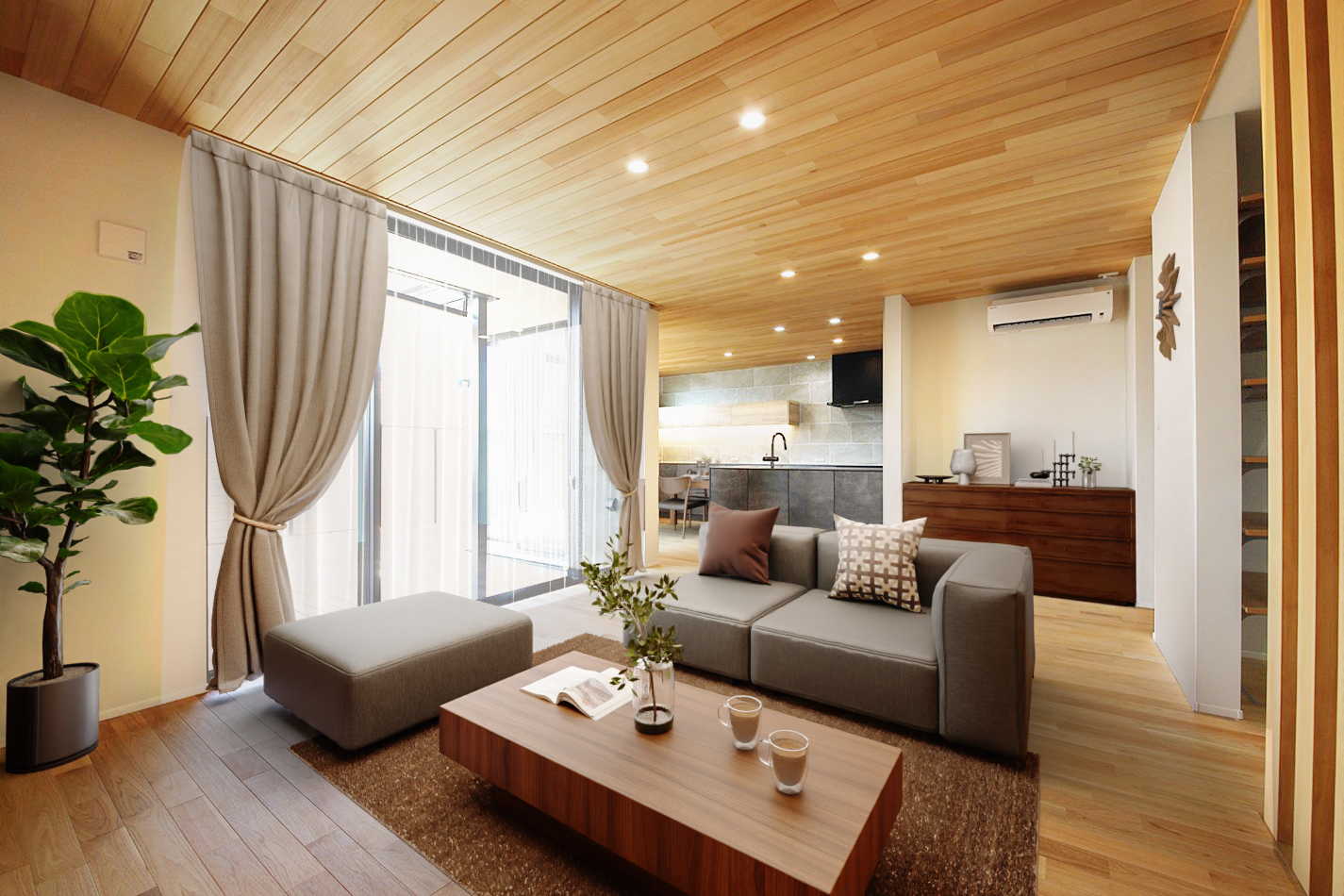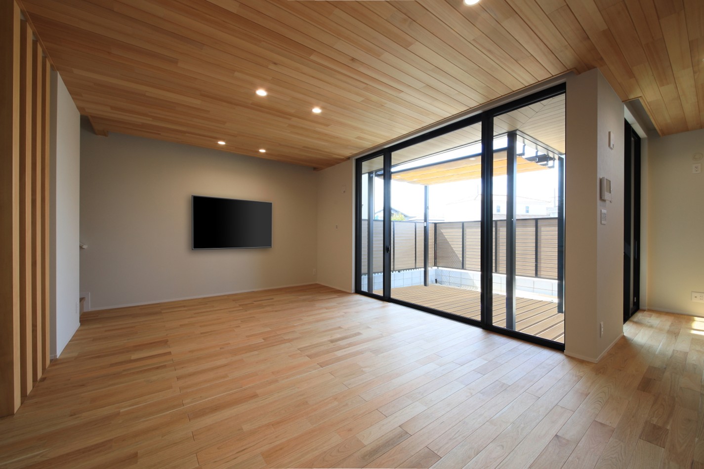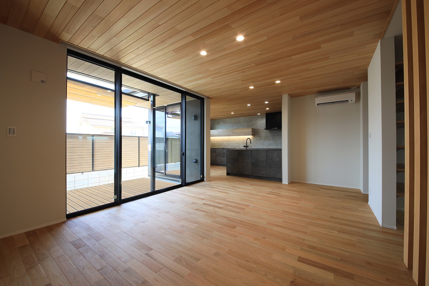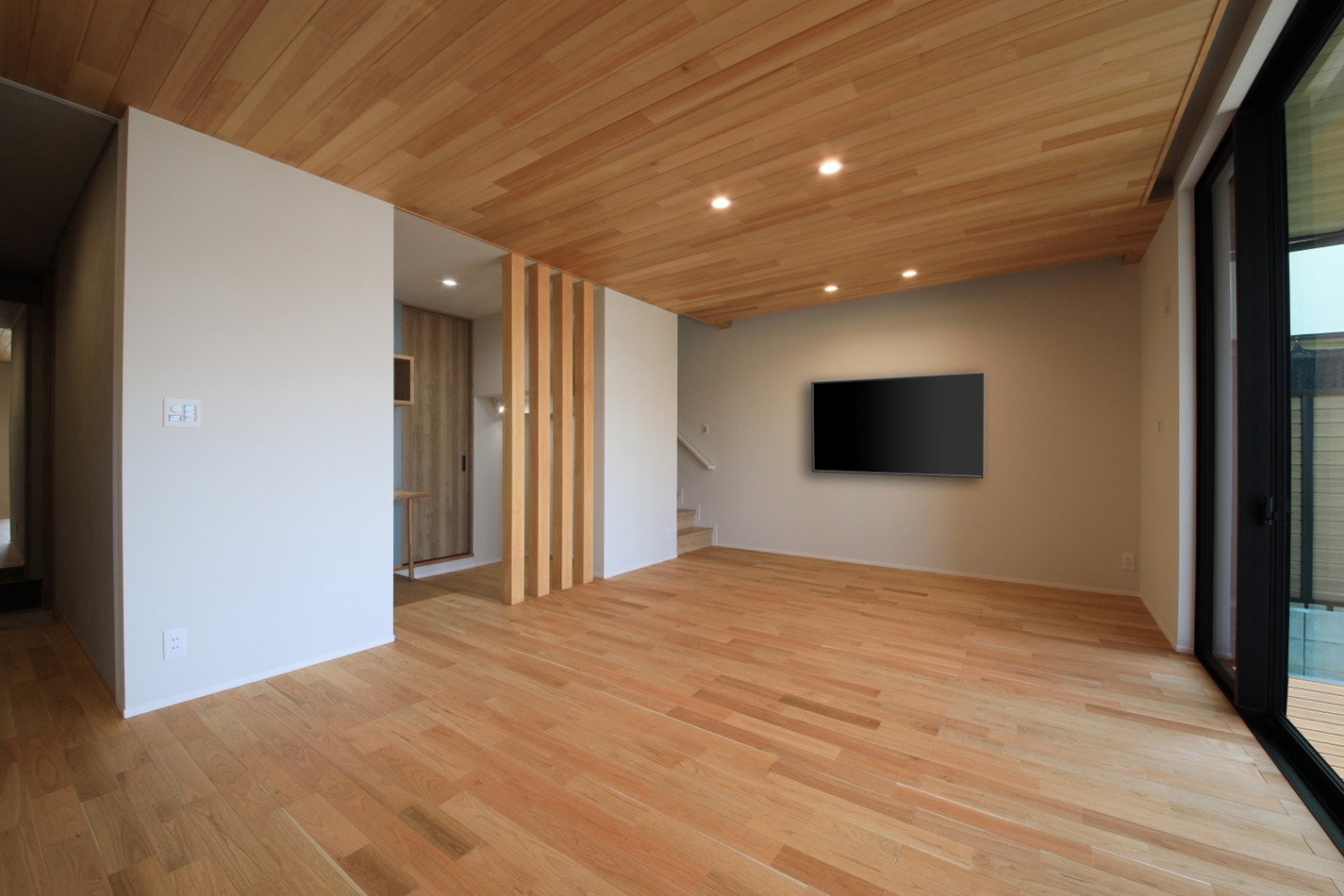【無垢のフローリング・天井の羽目板が心地いいLD】