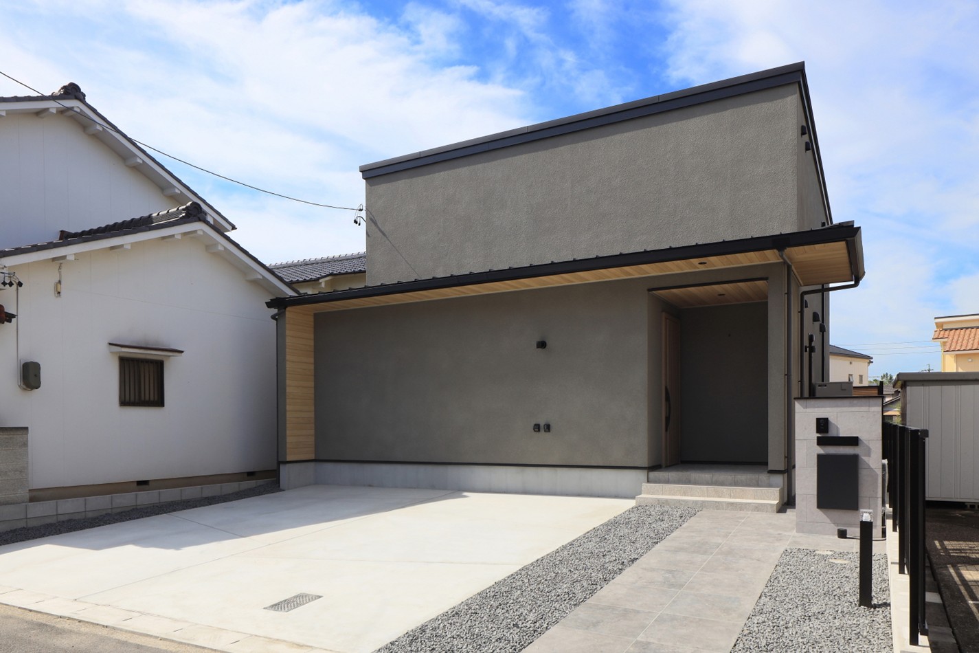 【モダンなファサードに渋みあふれるジョリパット吹付】