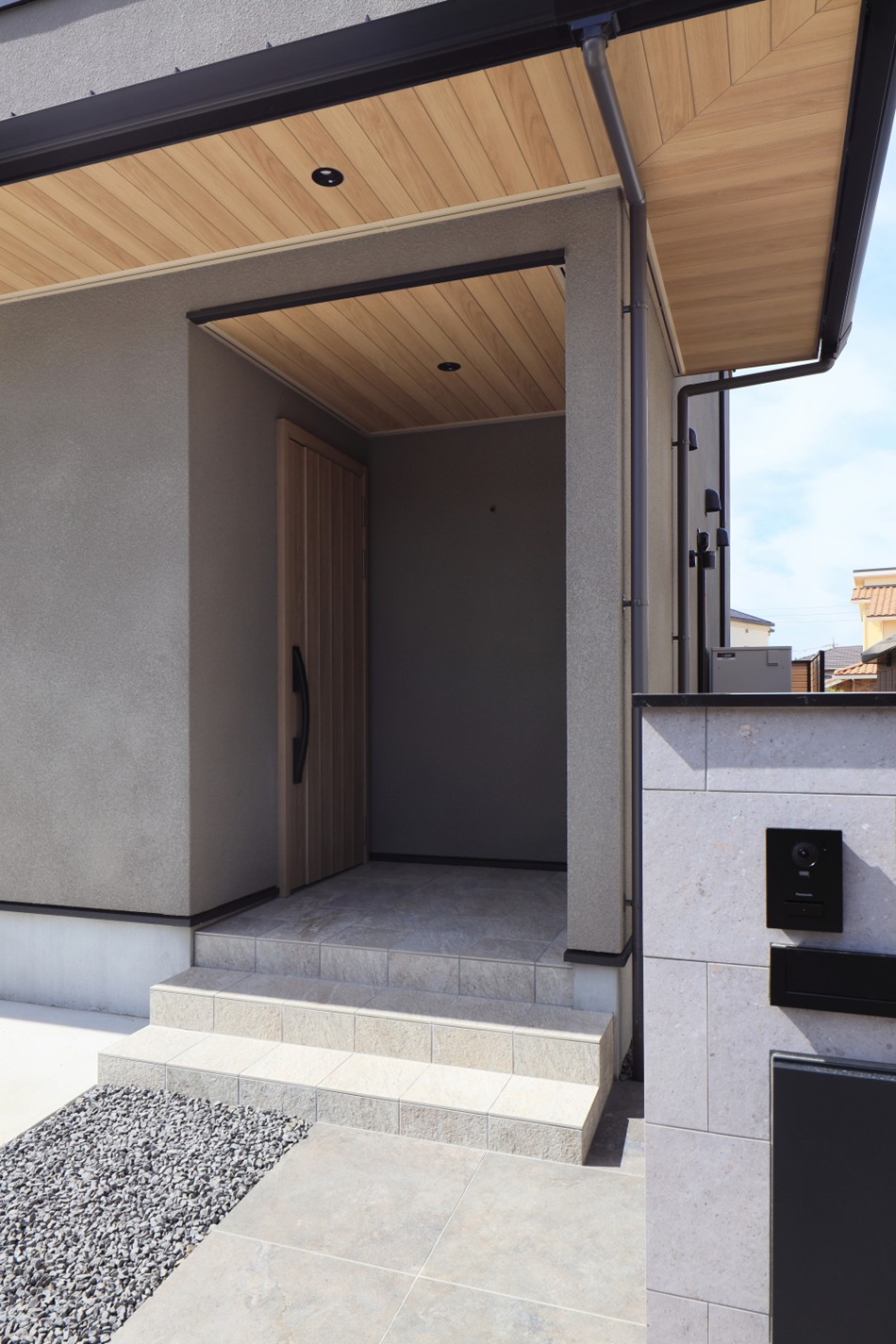 木目調の軒天ともよく調和がとれていて、とても趣ある飽きの来ないデザインに出来上がりました。