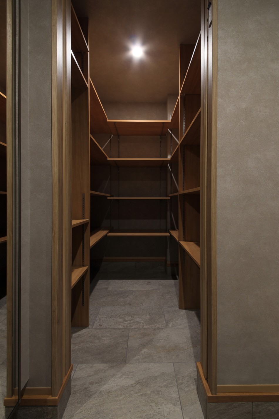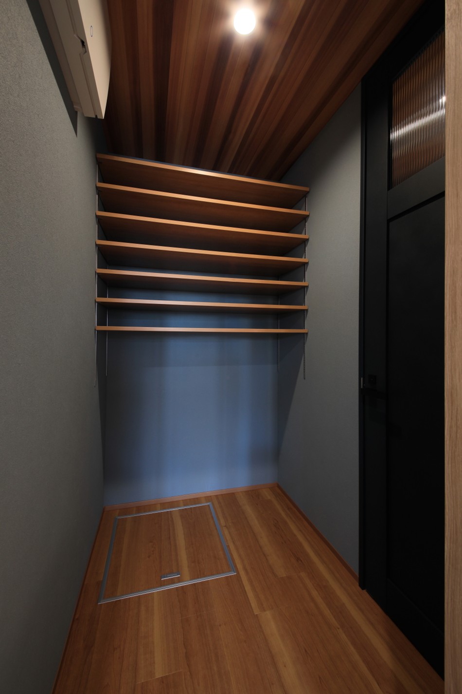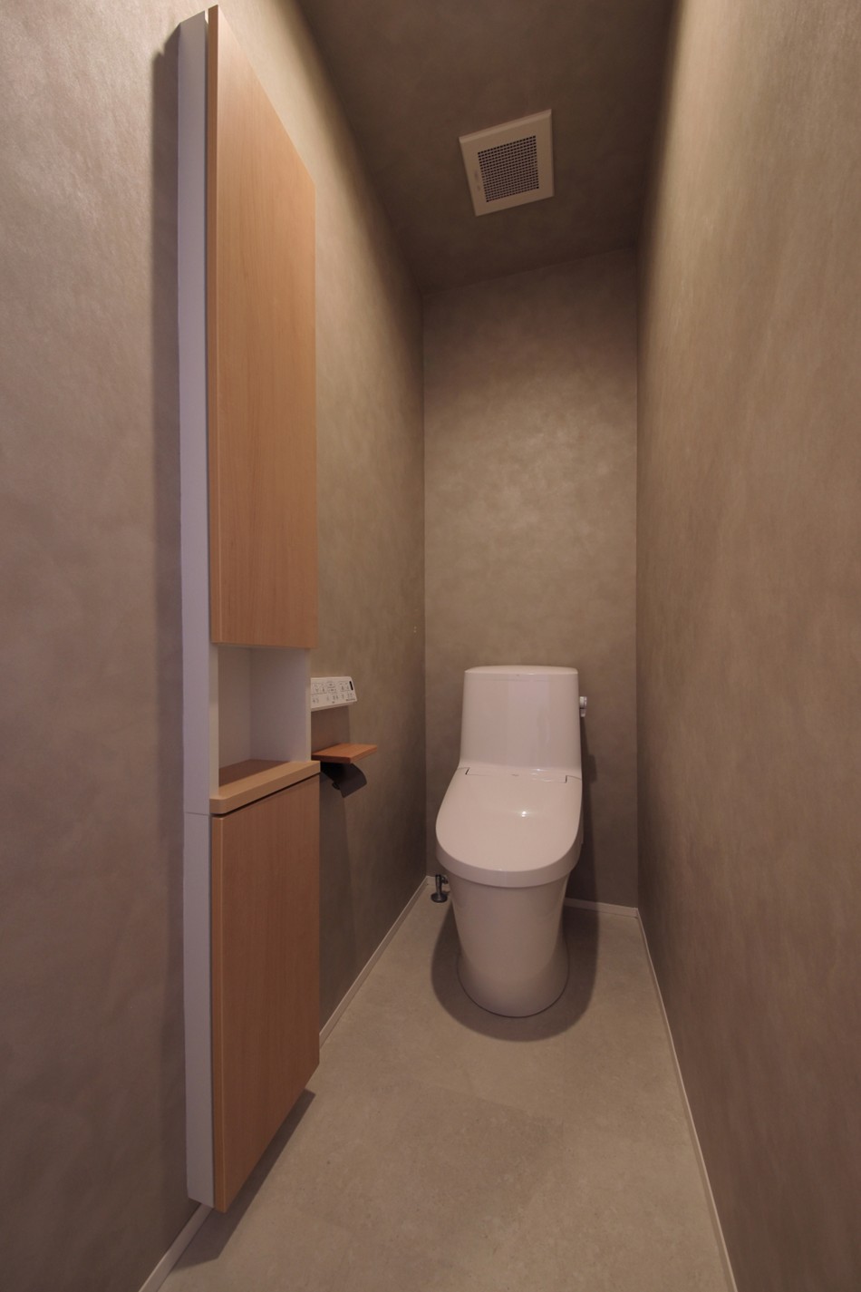 渋めのクロスに各種木目調の部材が落ち着いた雰囲気にマッチしています。