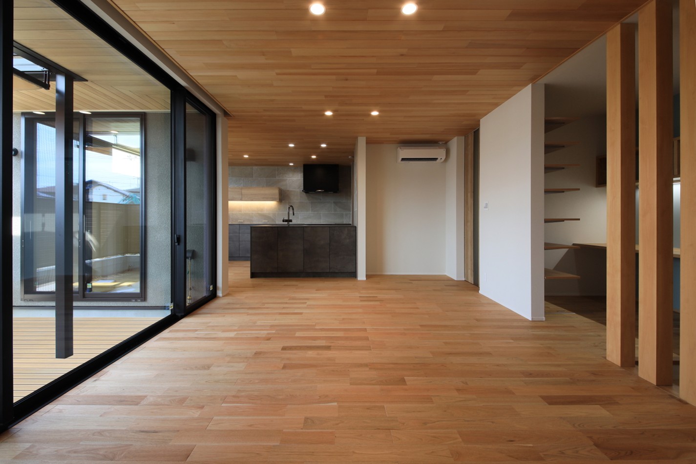 無垢材香る内観とモダンなフォルムに渋み漂うクールな外観