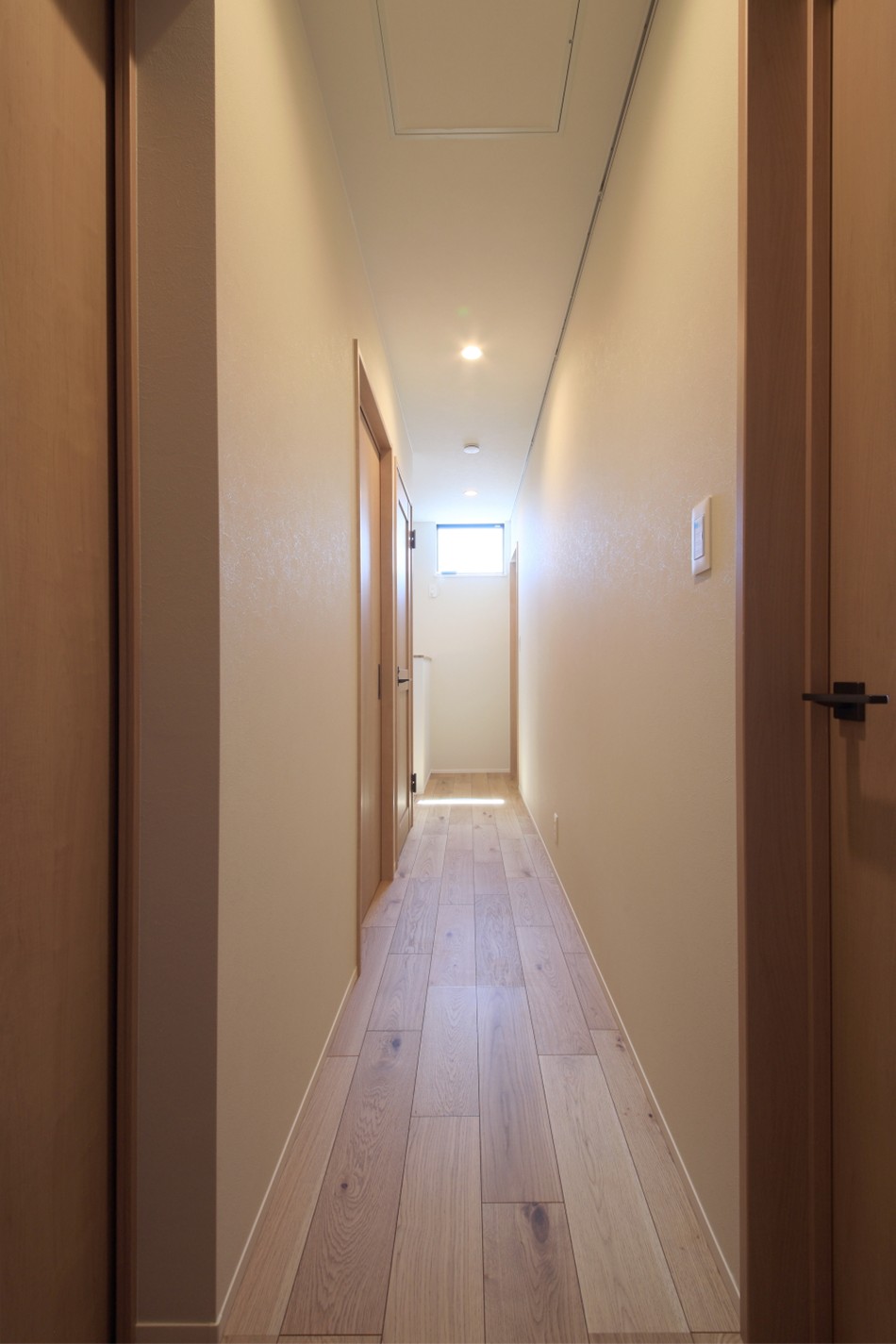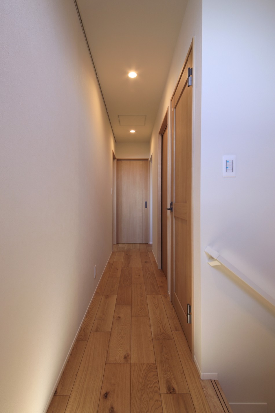 【2F廊下や各部屋にも突板フローリングをふんだんに使用】