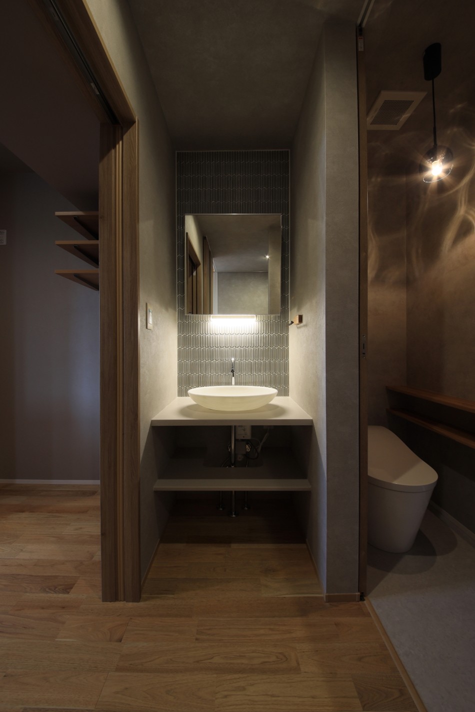 家族しか利用しない洗面・ユニットバス空間は、お客様も通らない2Fへ設置しました。