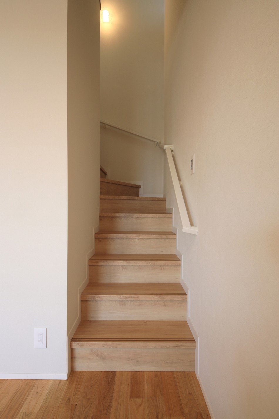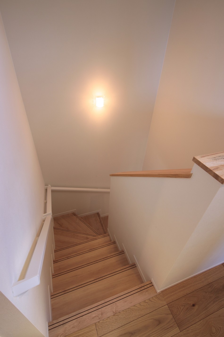 2Fの床は雰囲気変わって、突板複合フローリングを使用しています。