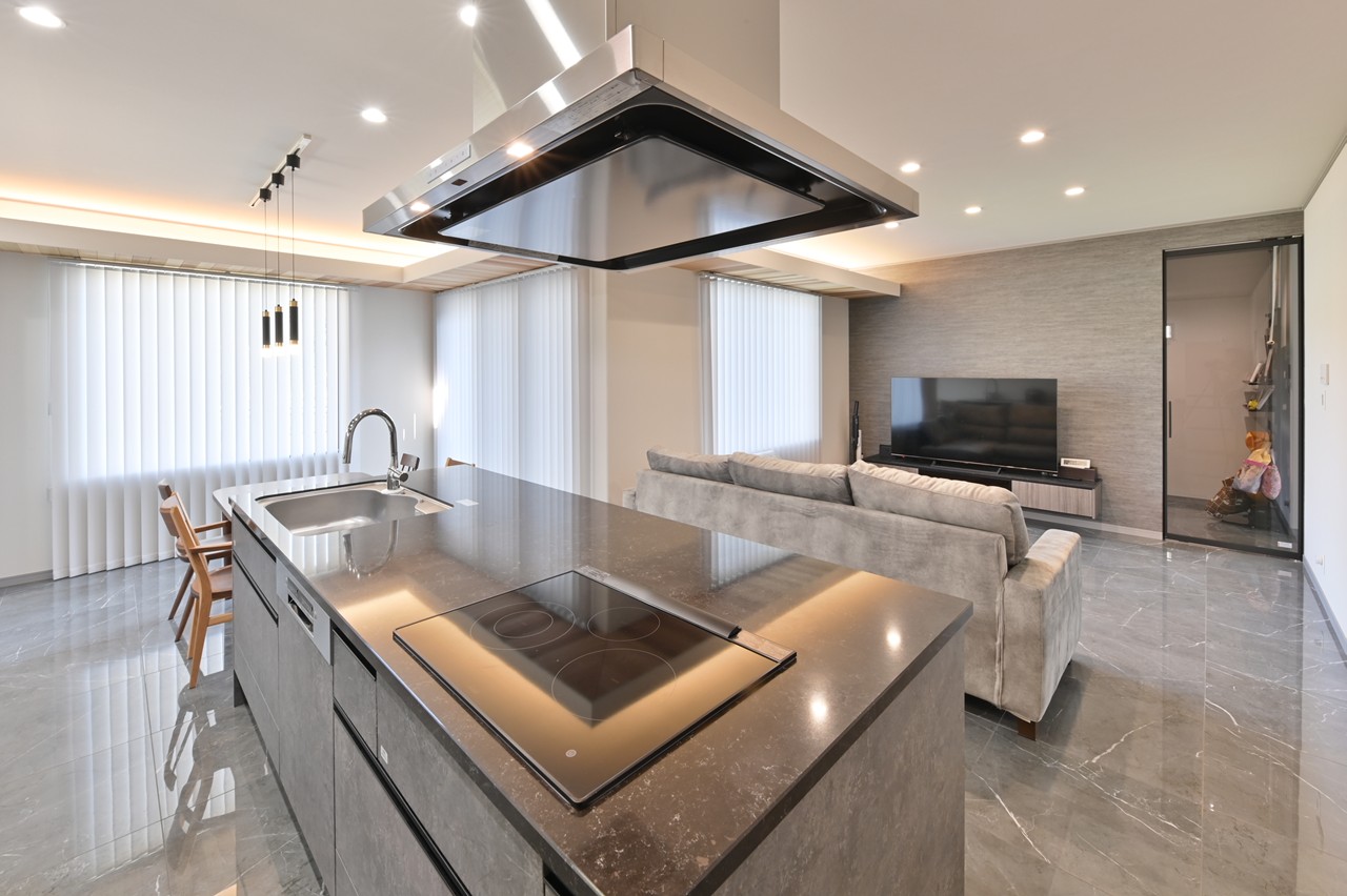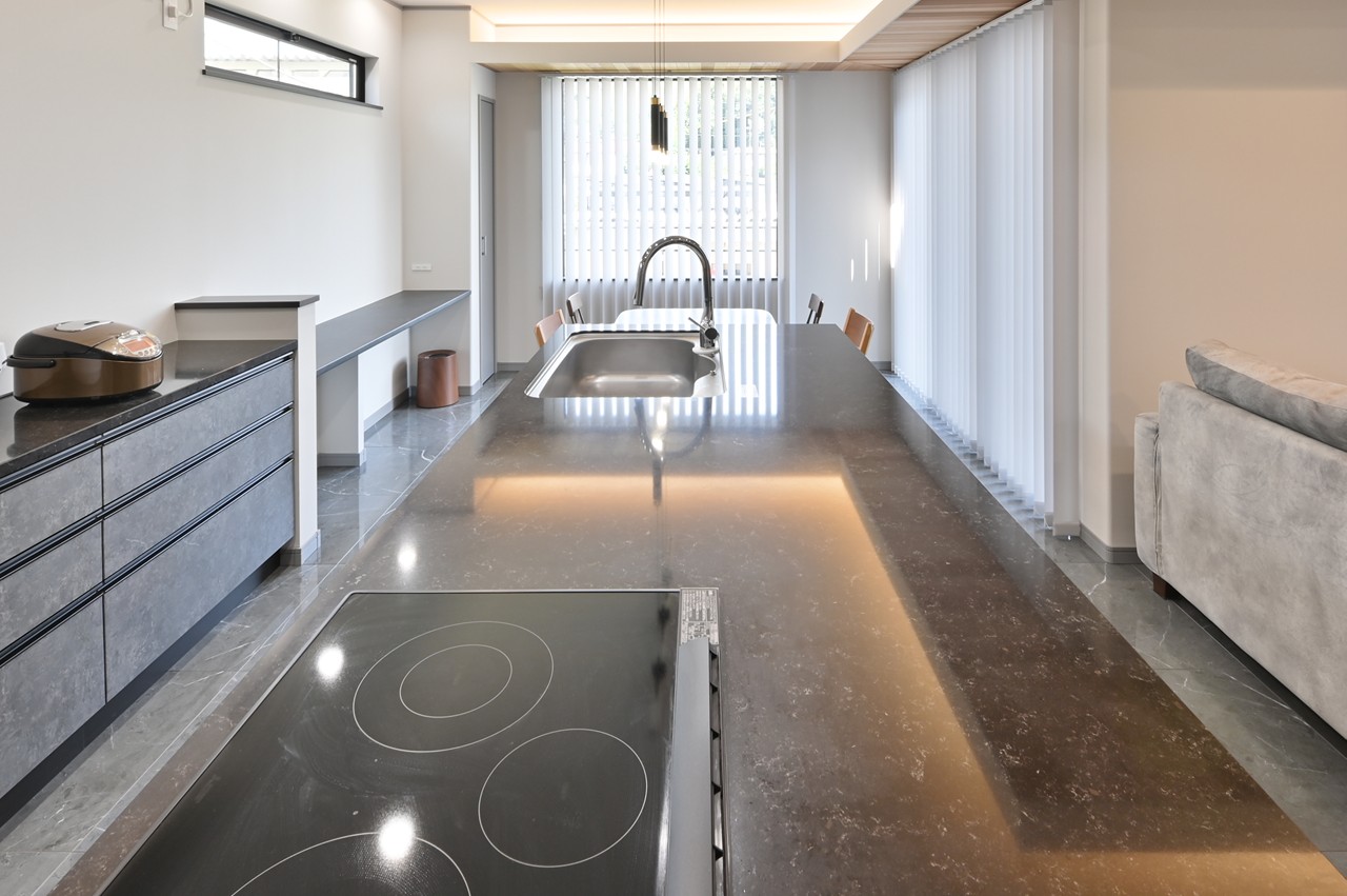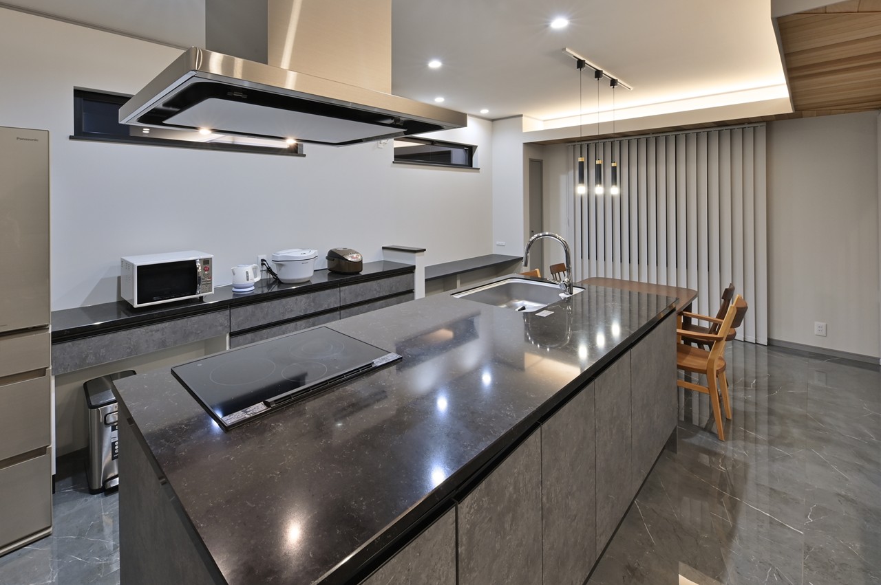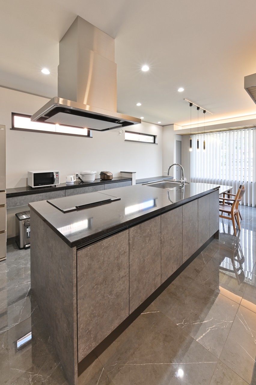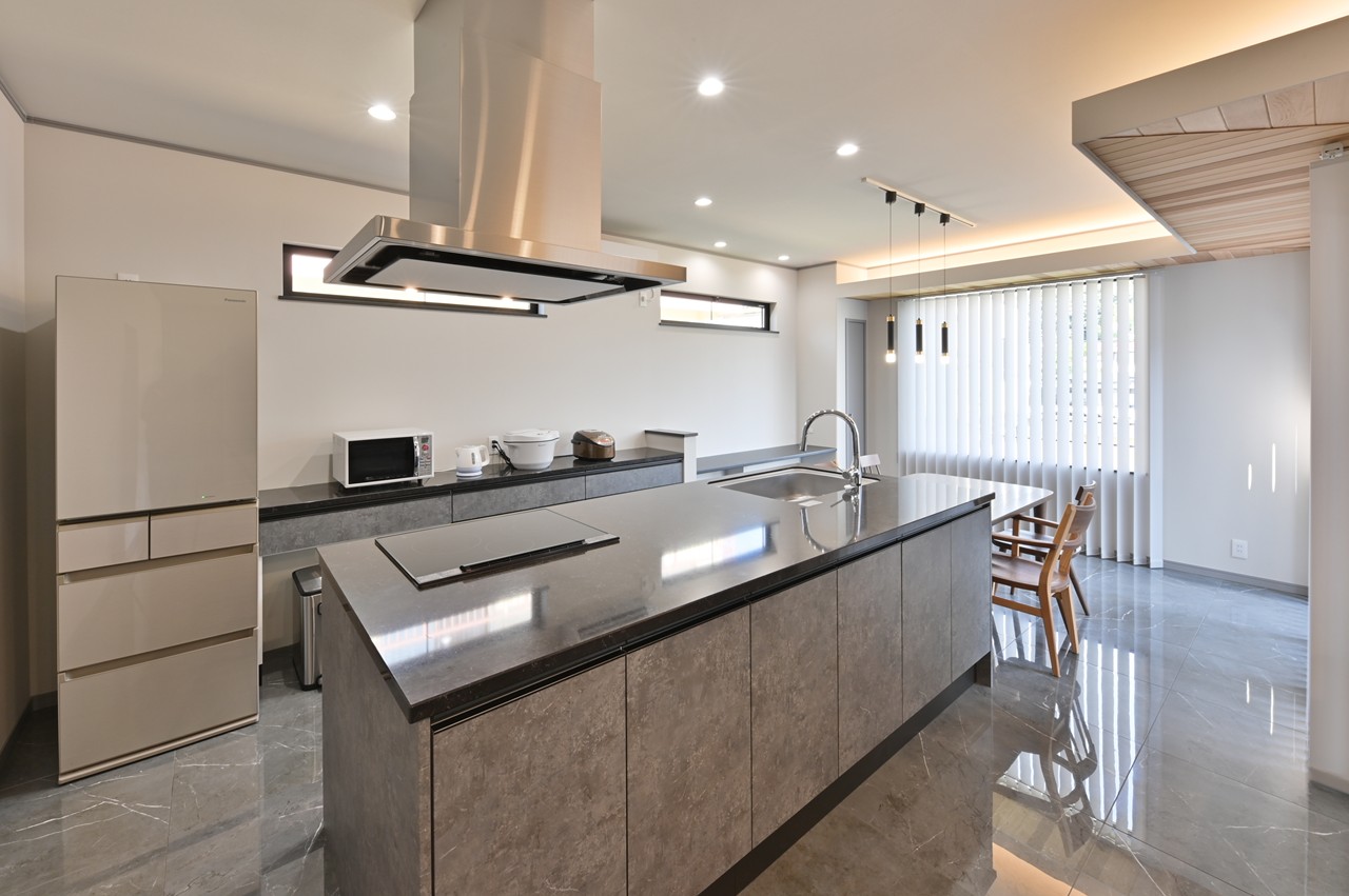 まるでショールームのようなアイランドキッチンに思わず見とれ、引き込まれてしまいます。
