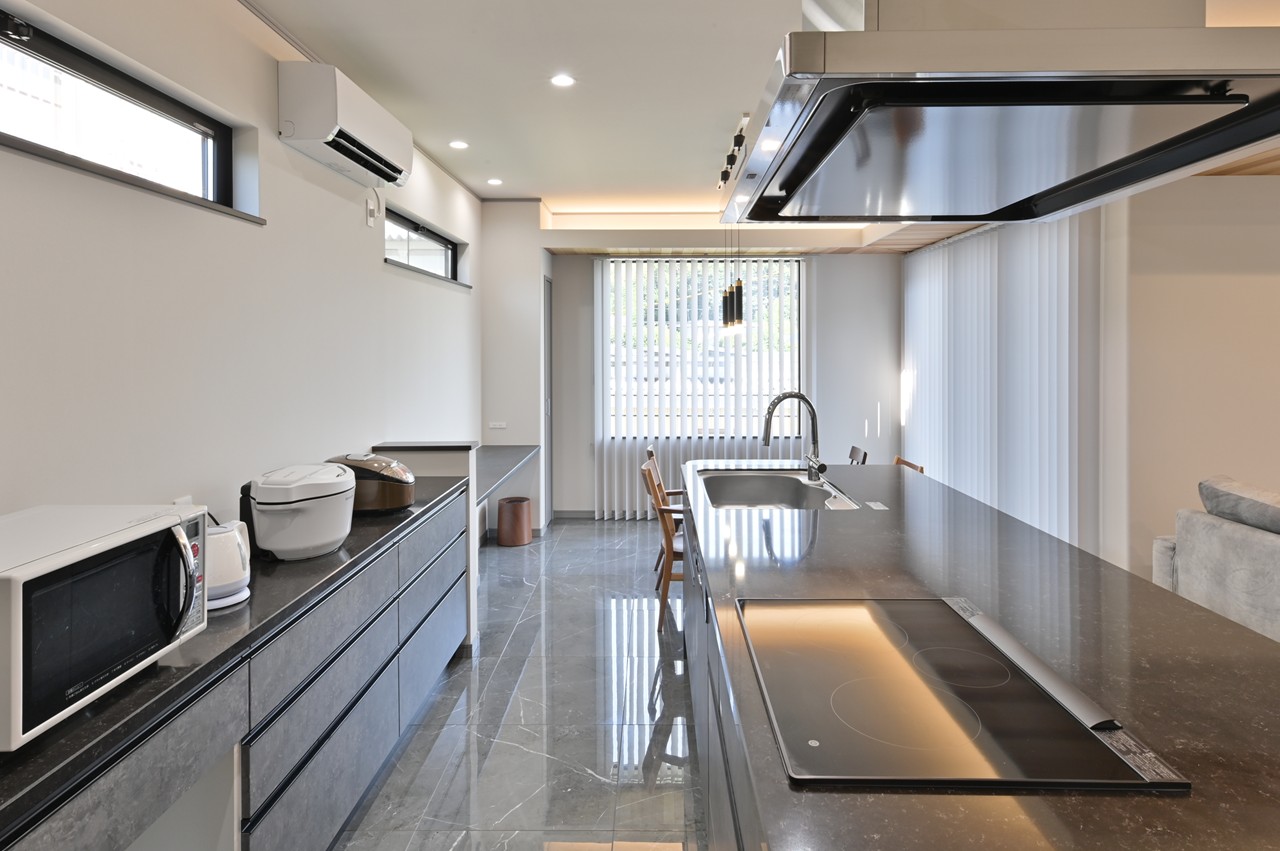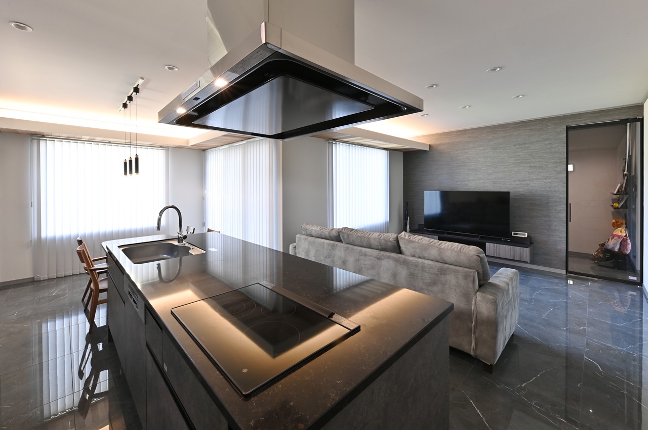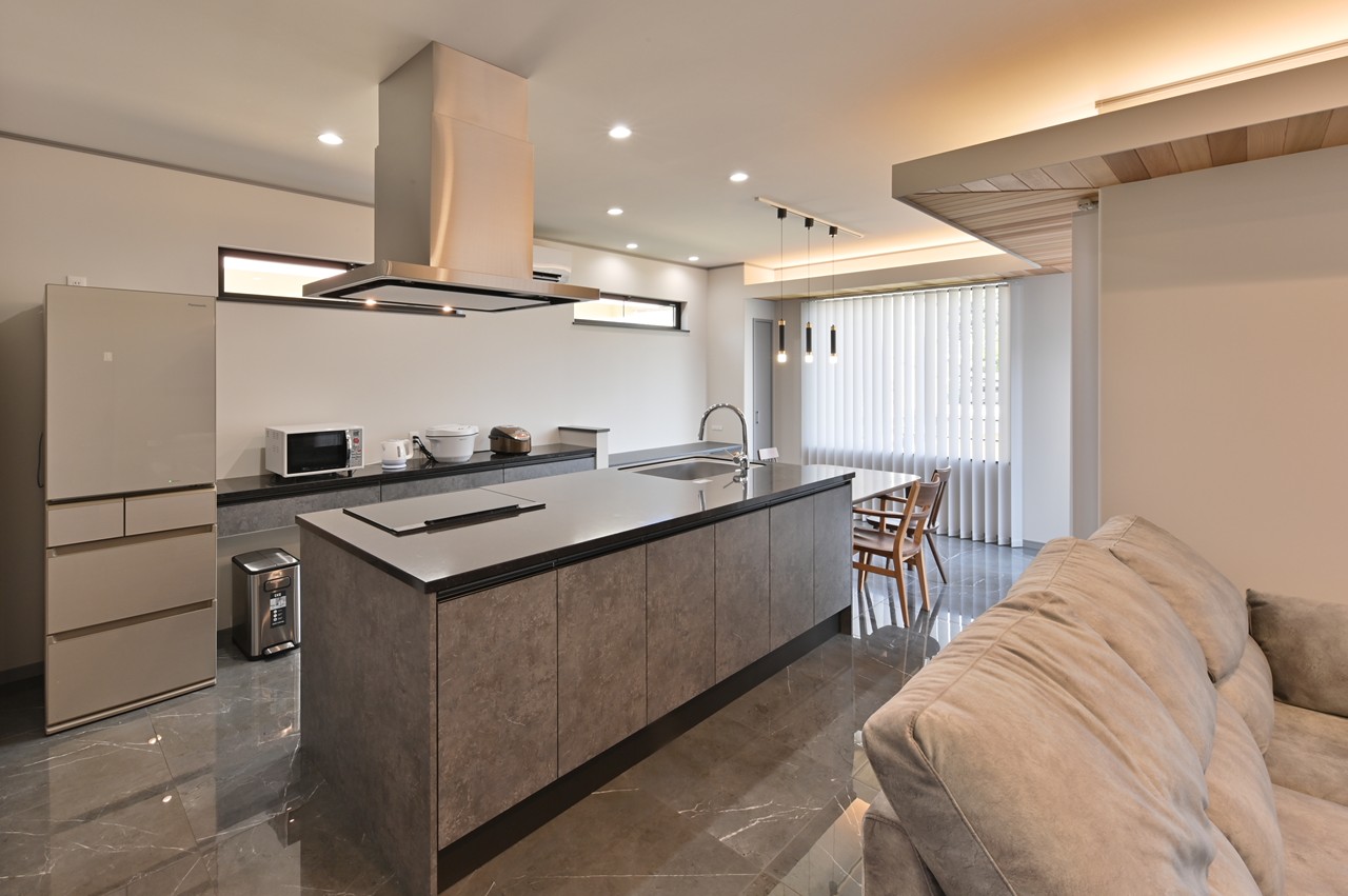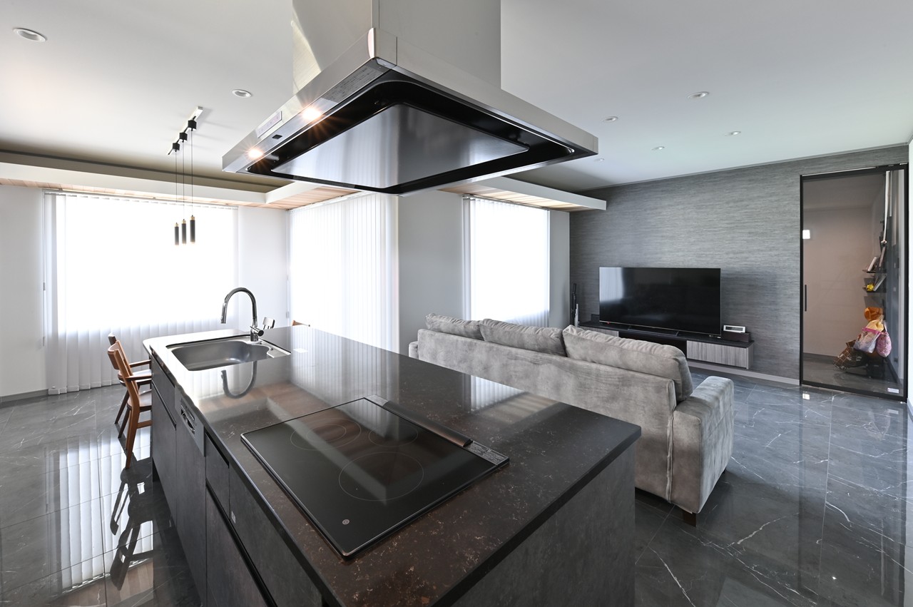 まるでショールームのようなアイランドキッチンに思わず見とれ、引き込まれてしまいます。