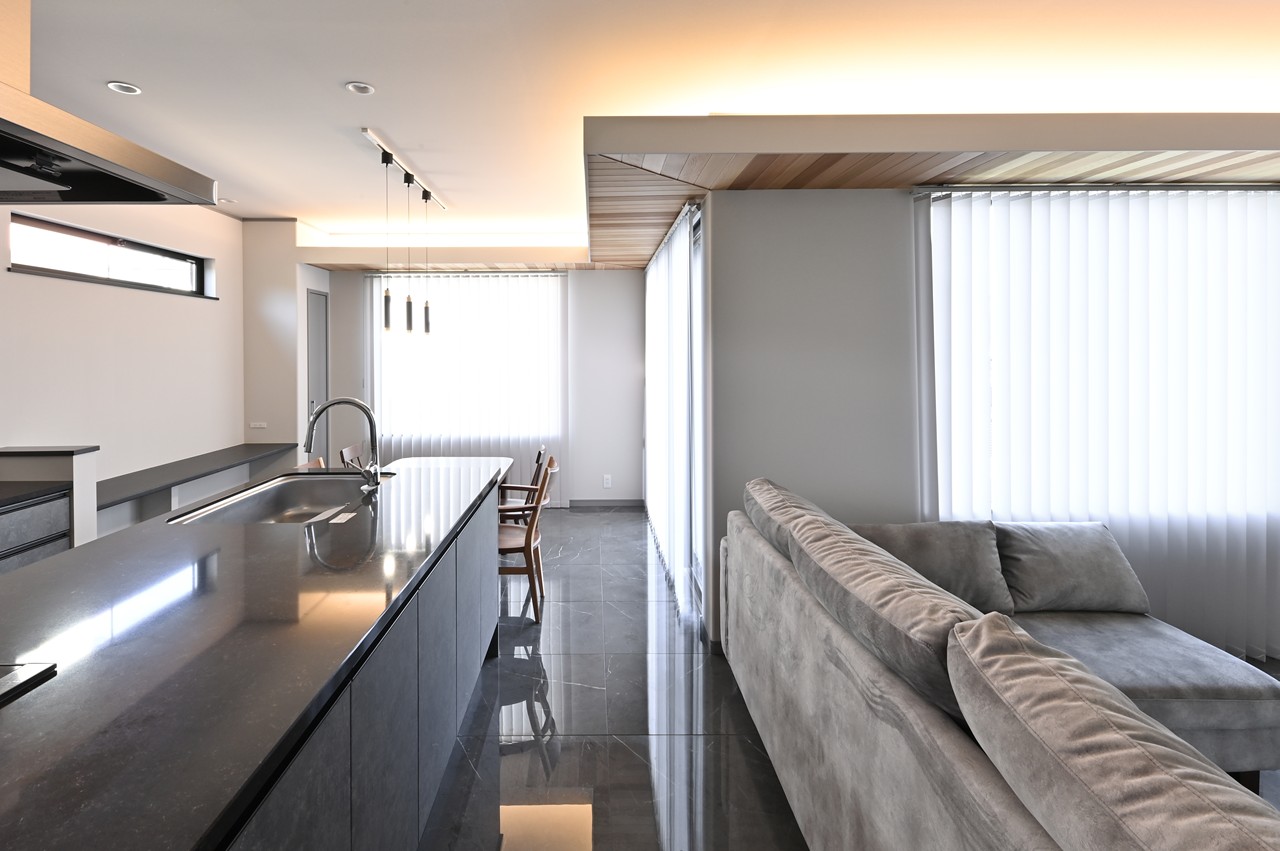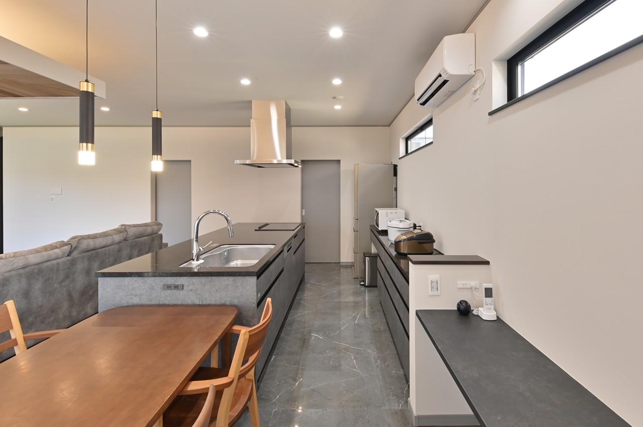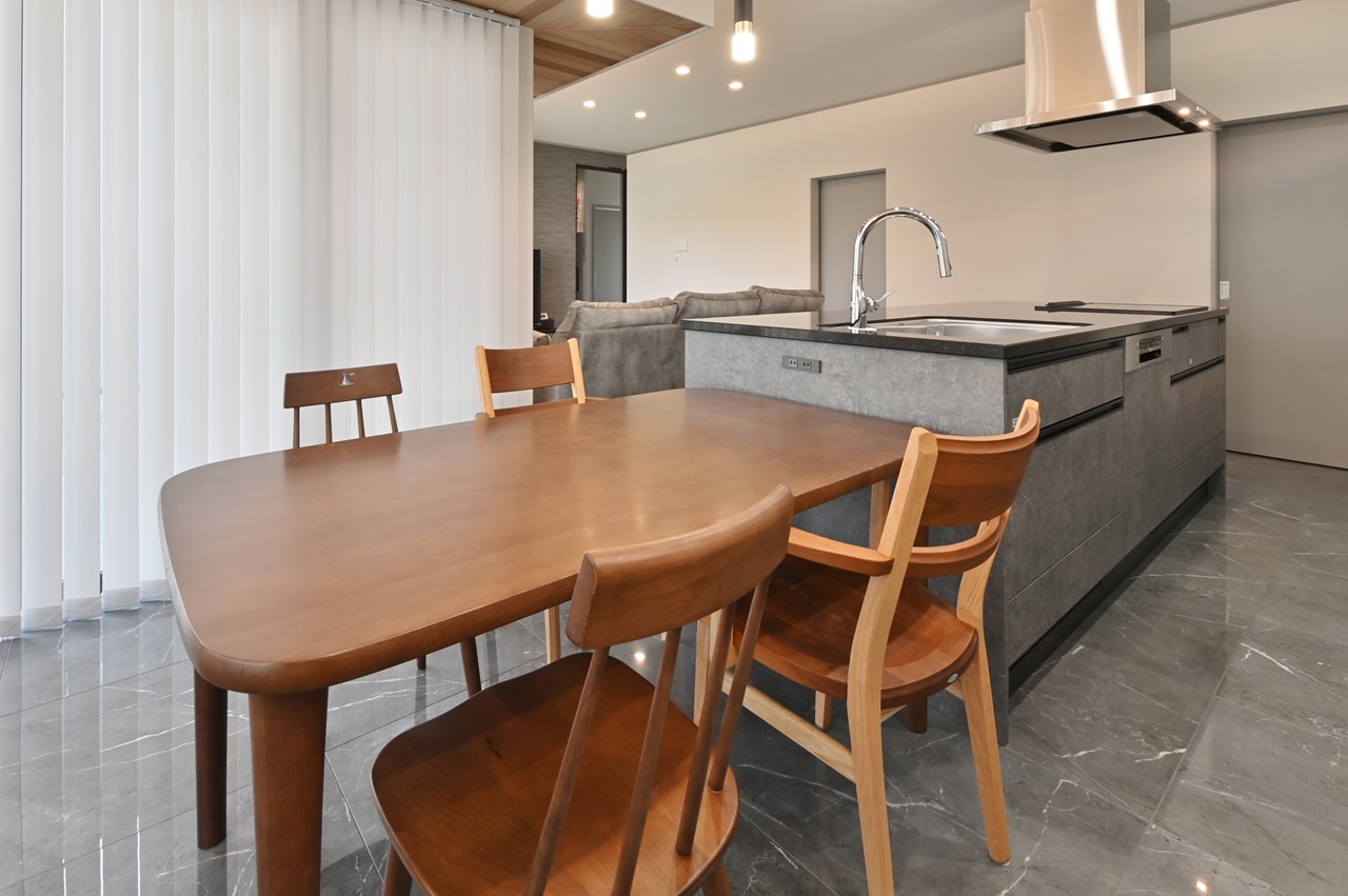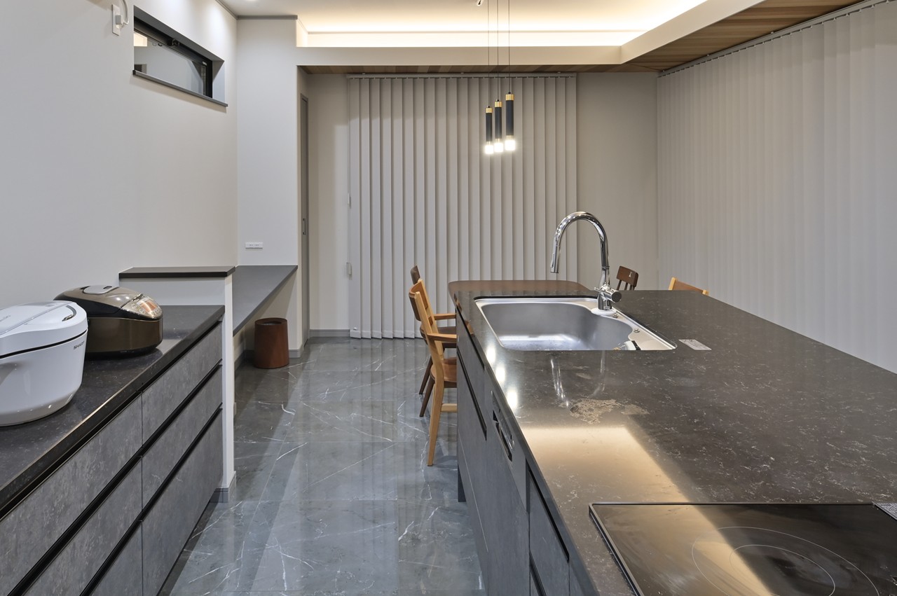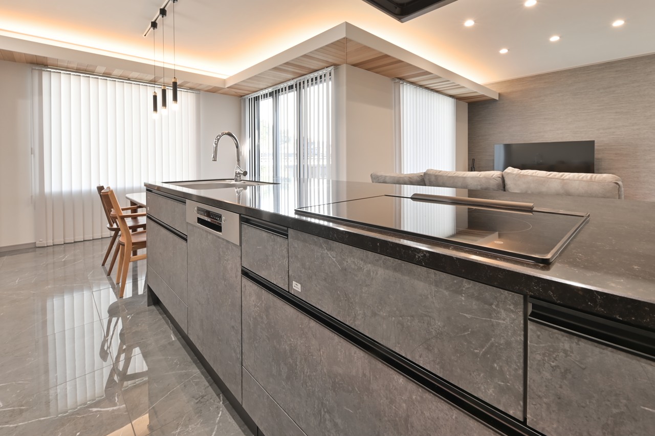 まるでショールームのようなアイランドキッチンに思わず見とれ、引き込まれてしまいます。