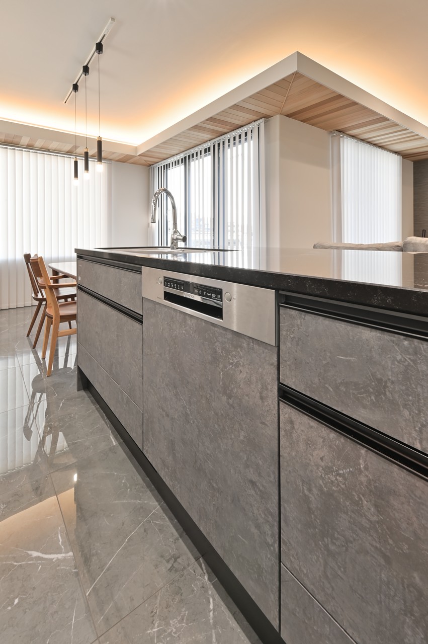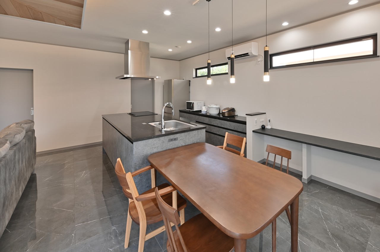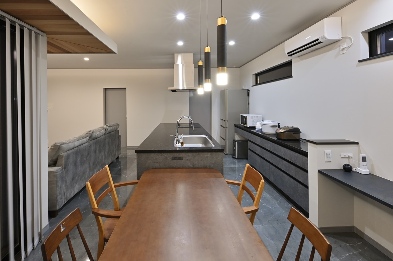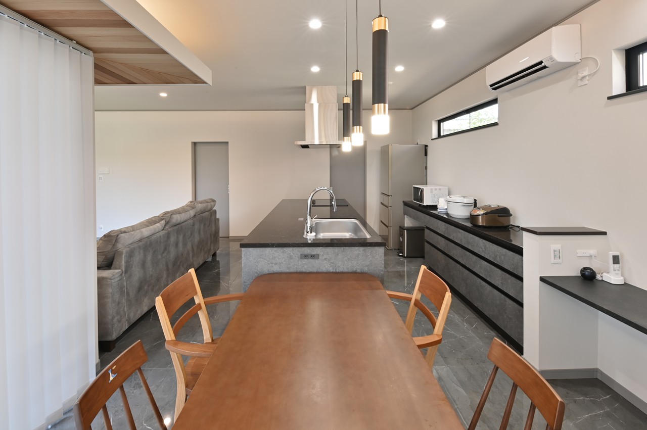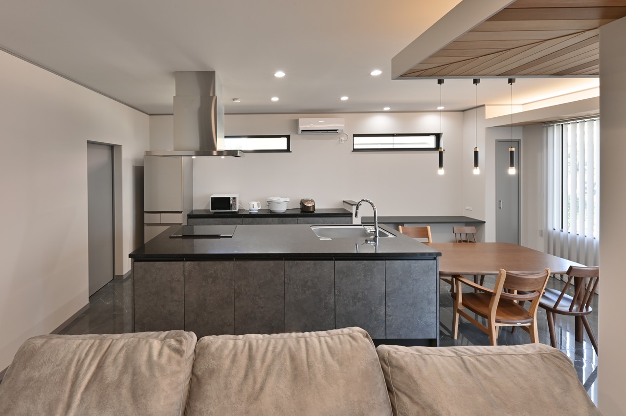 まるでショールームのようなアイランドキッチンに思わず見とれ、引き込まれてしまいます。