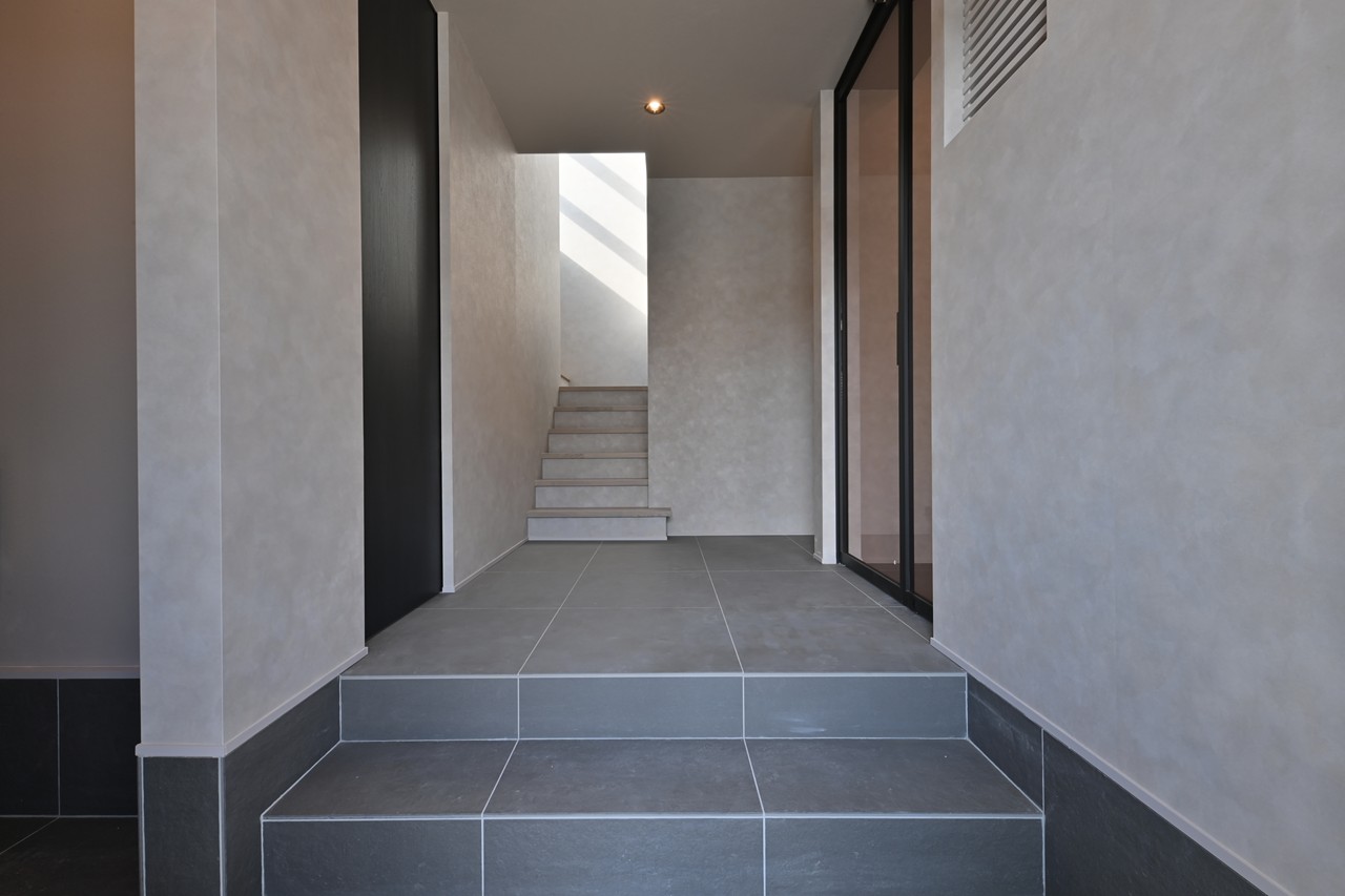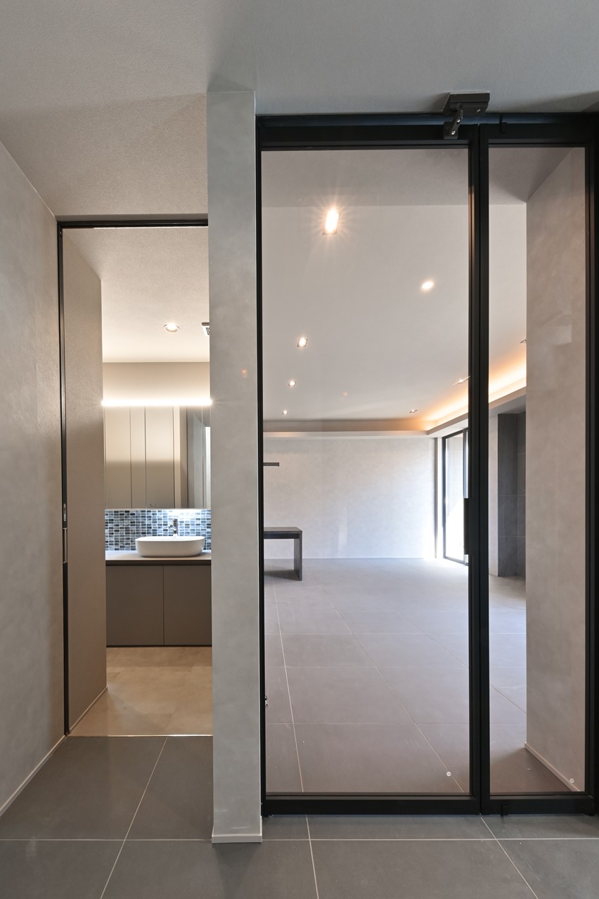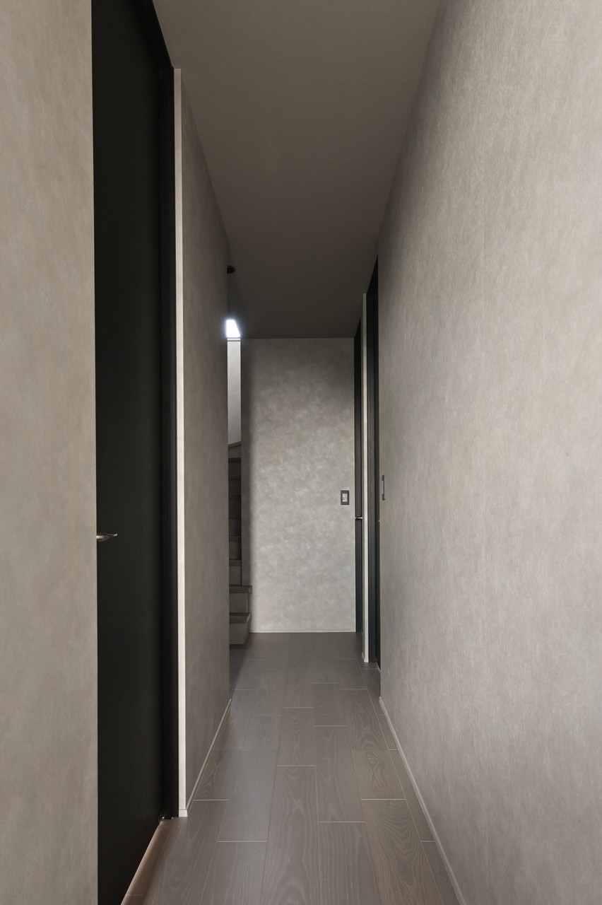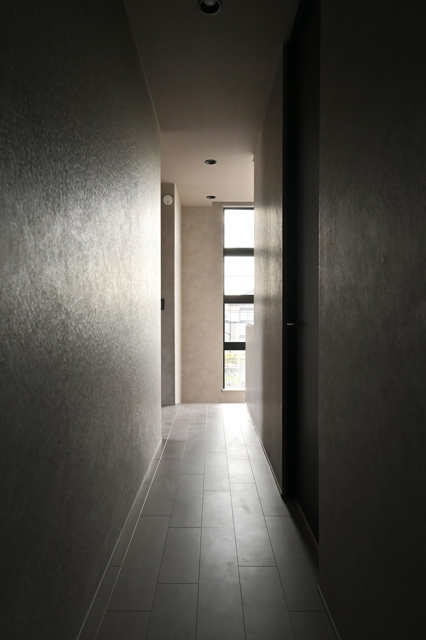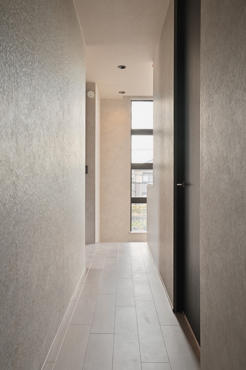 廊下の床もタイル張りでクリアでシャープな印象を与えてくれます。