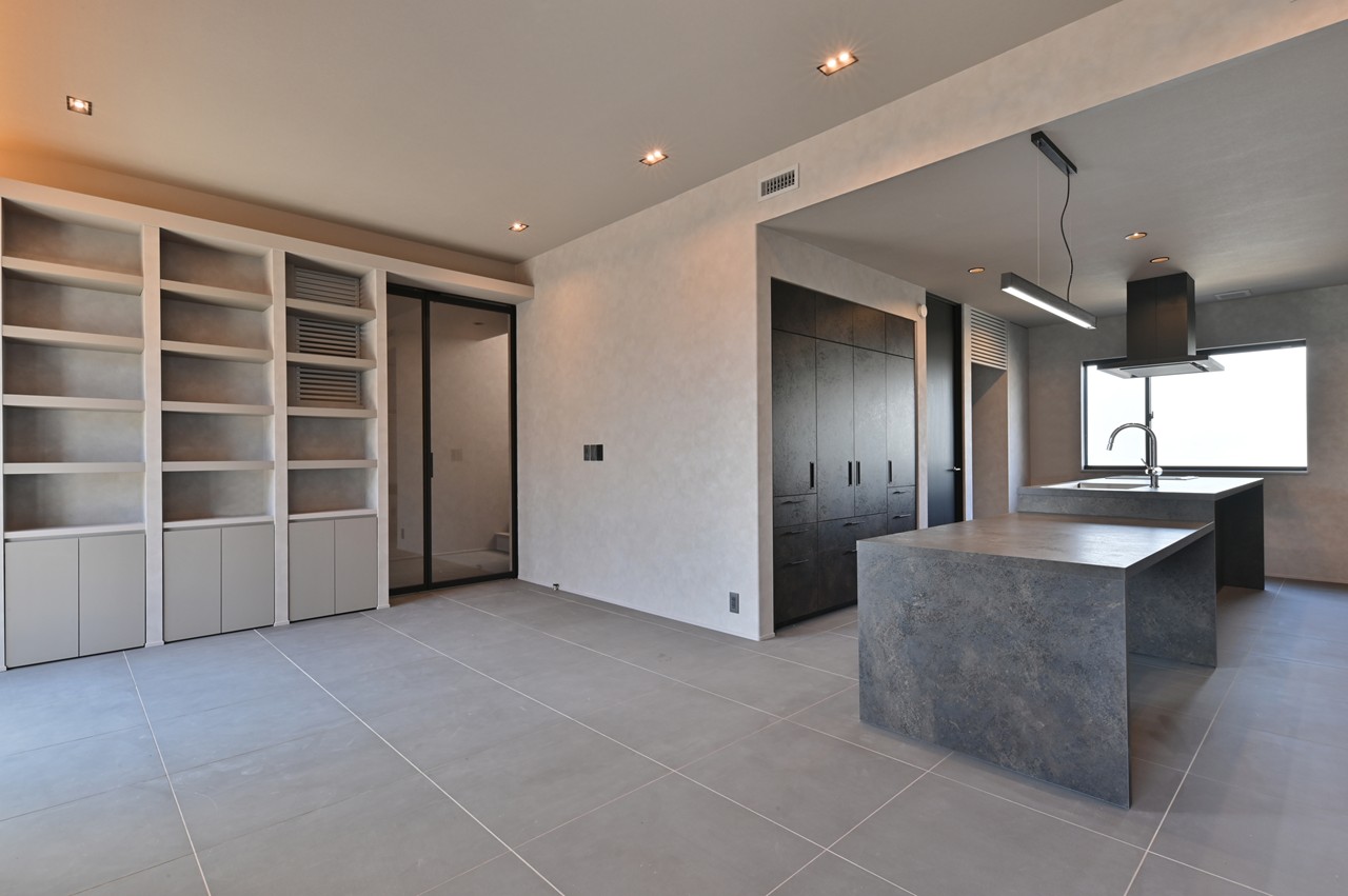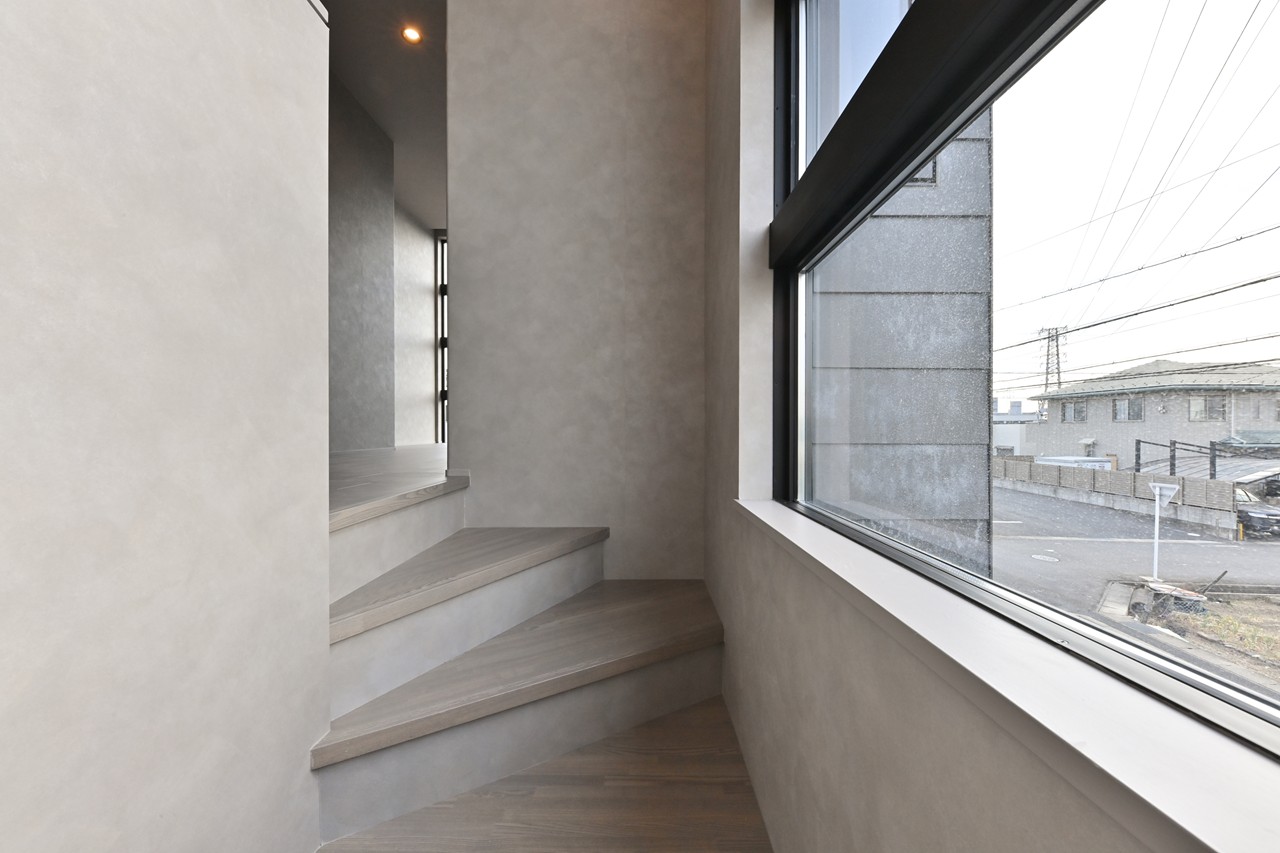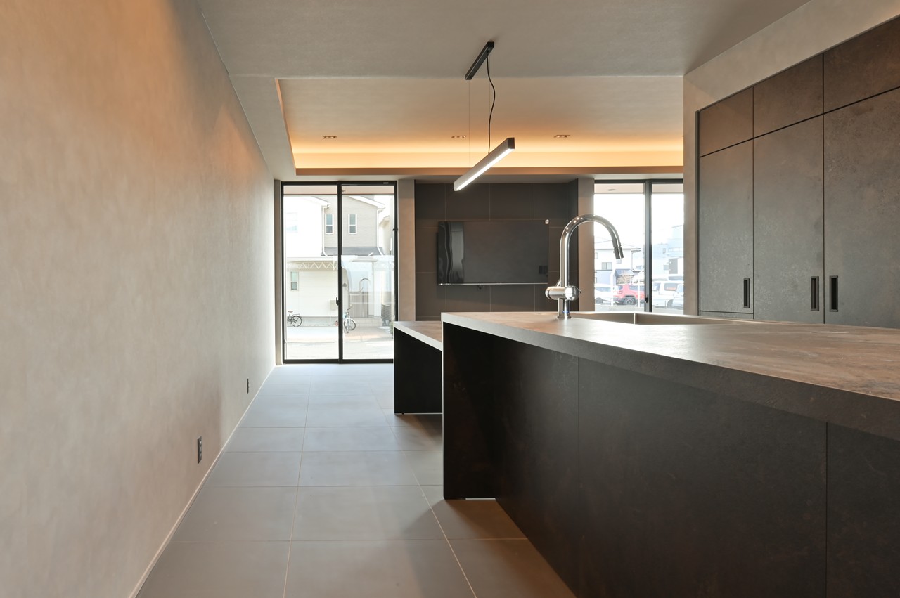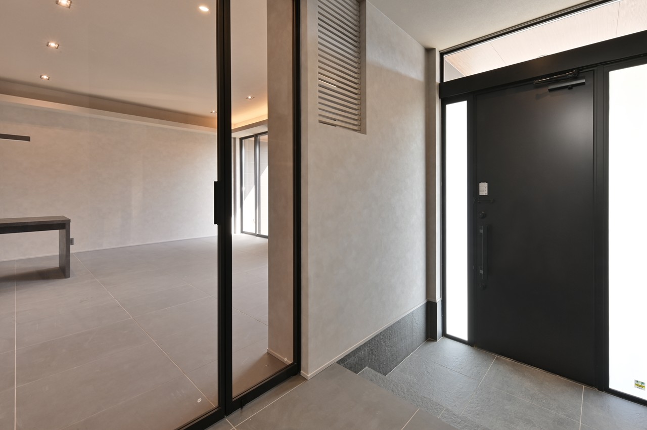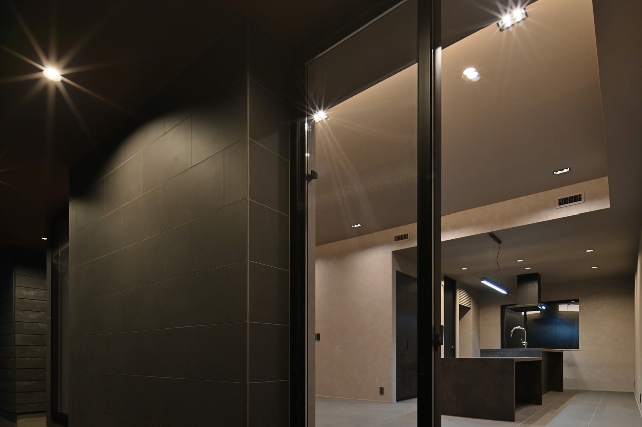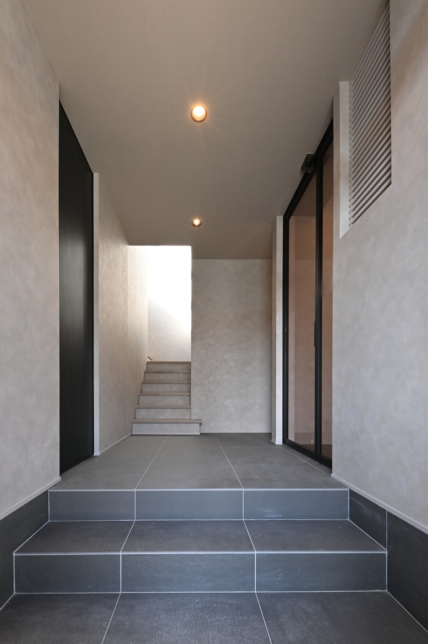 廊下の床もタイル張りでクリアでシャープな印象を与えてくれます。