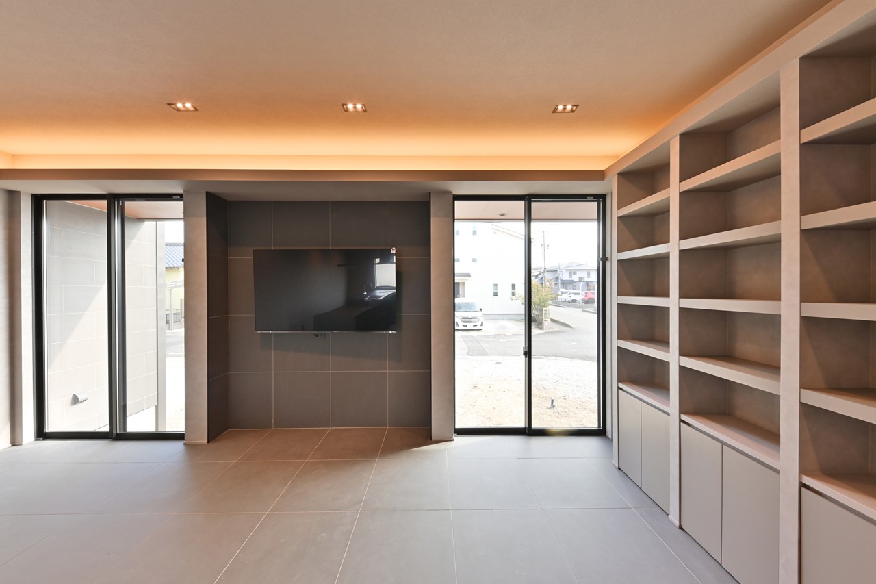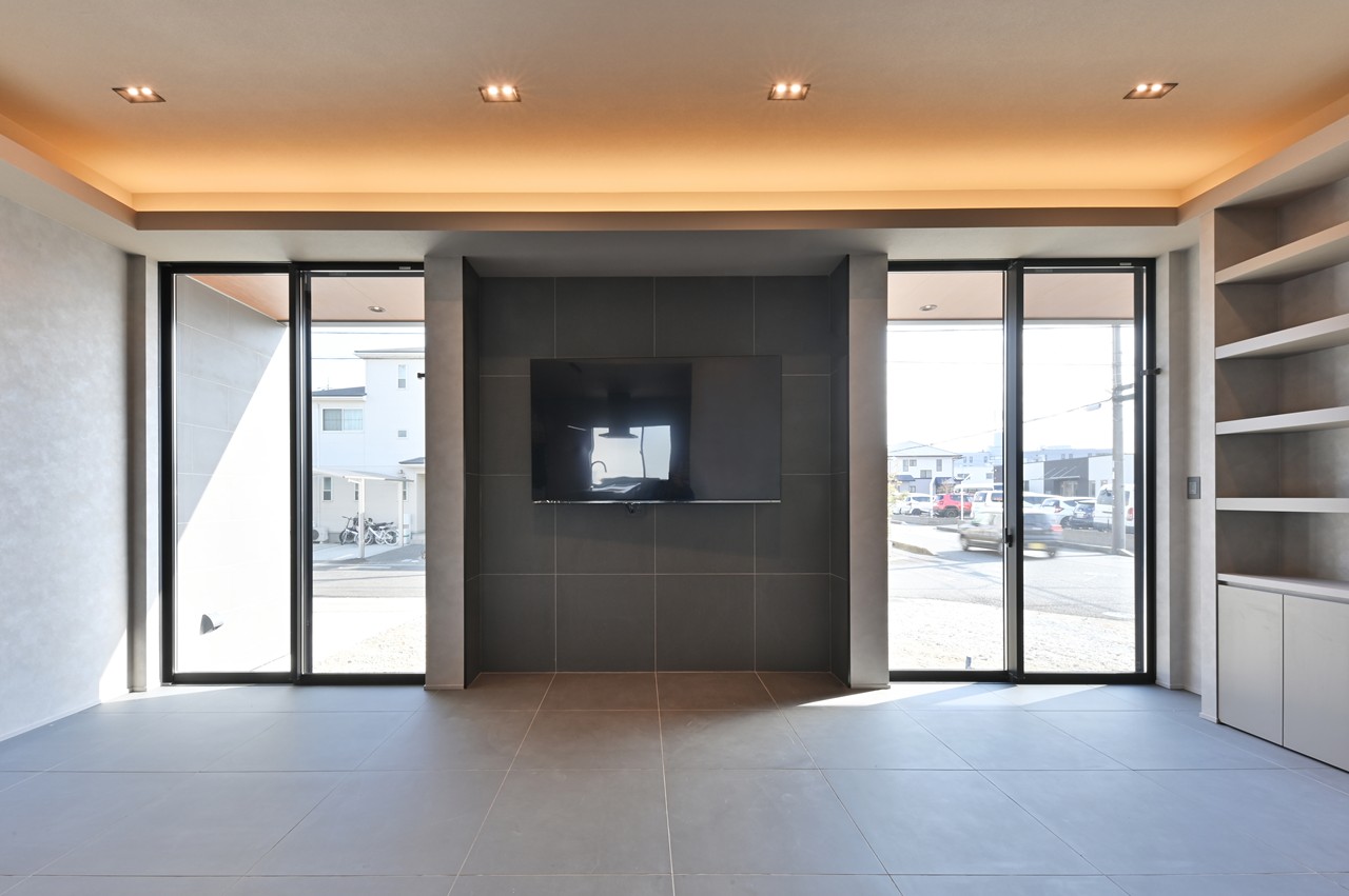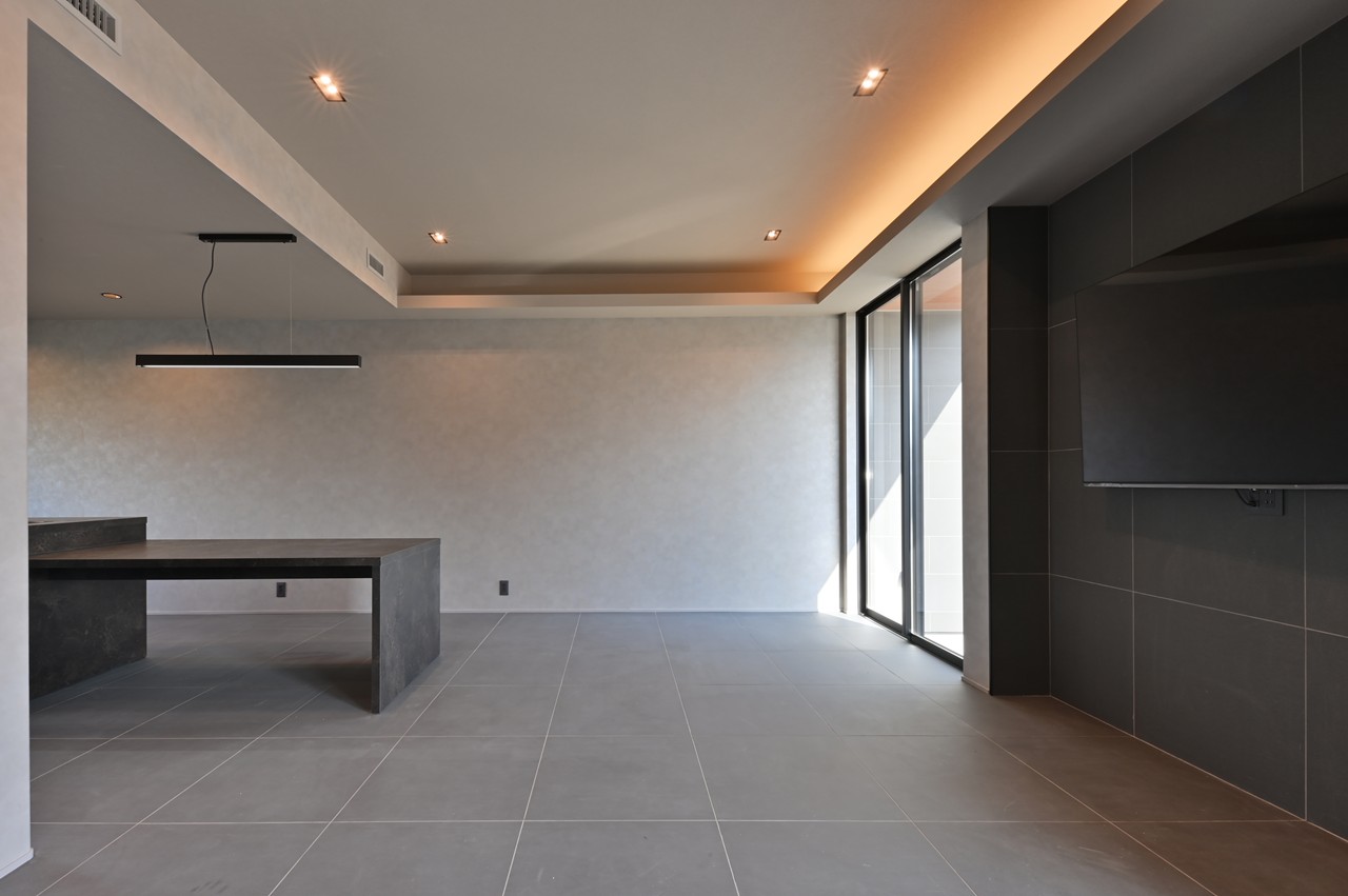 LDKの間接照明や天井までの高さのハイサッシが光の効果を高めてくれます。