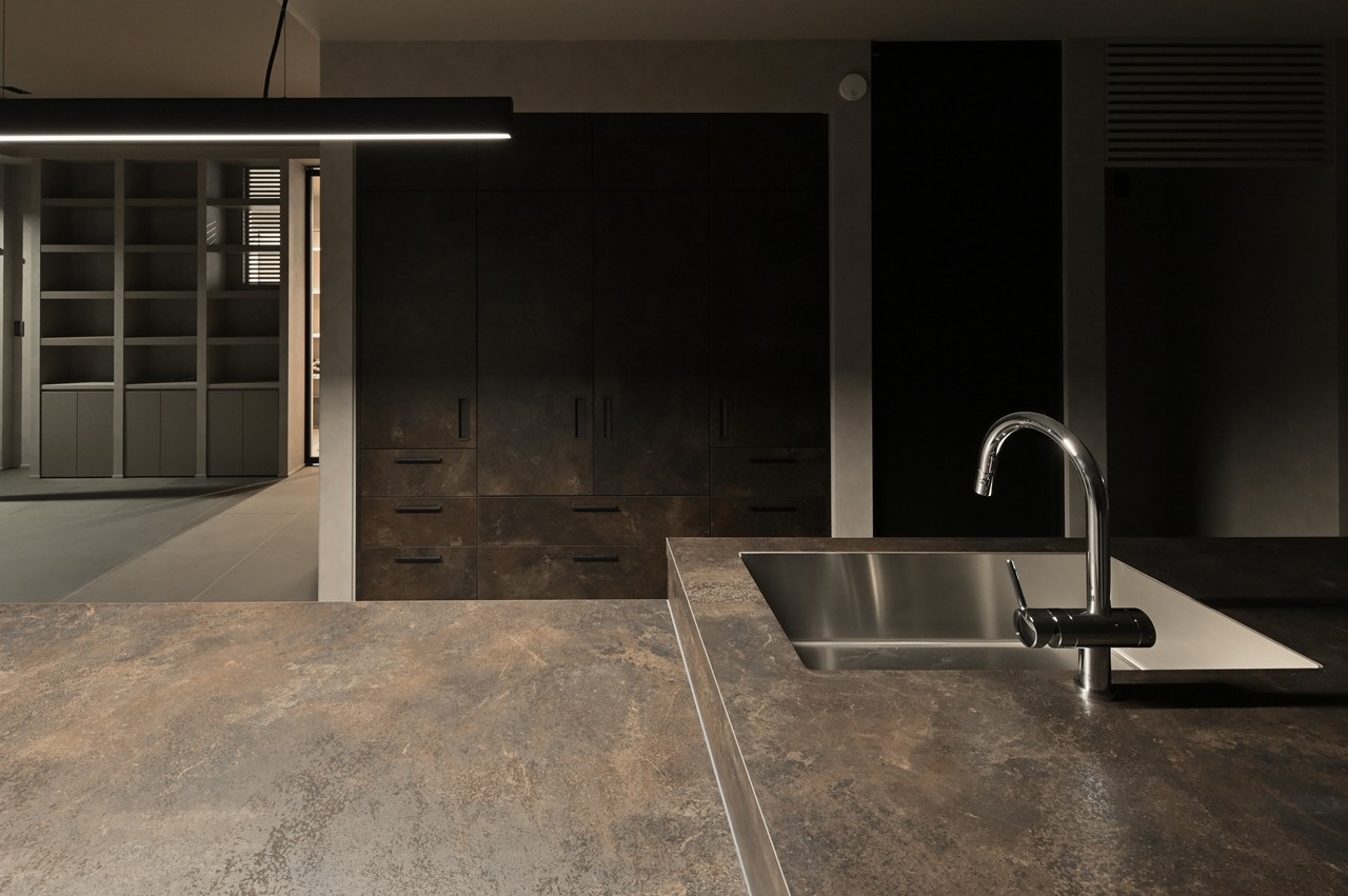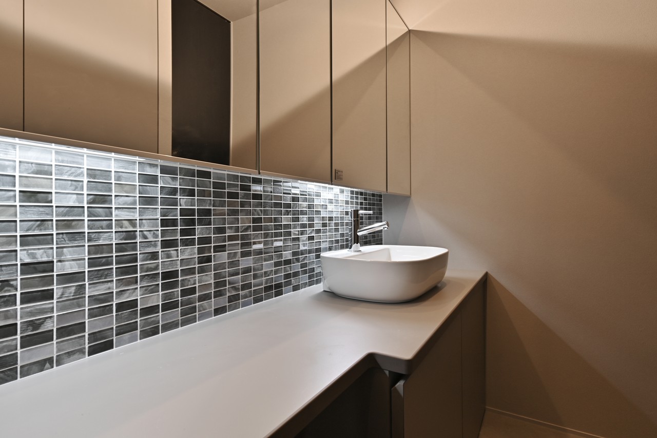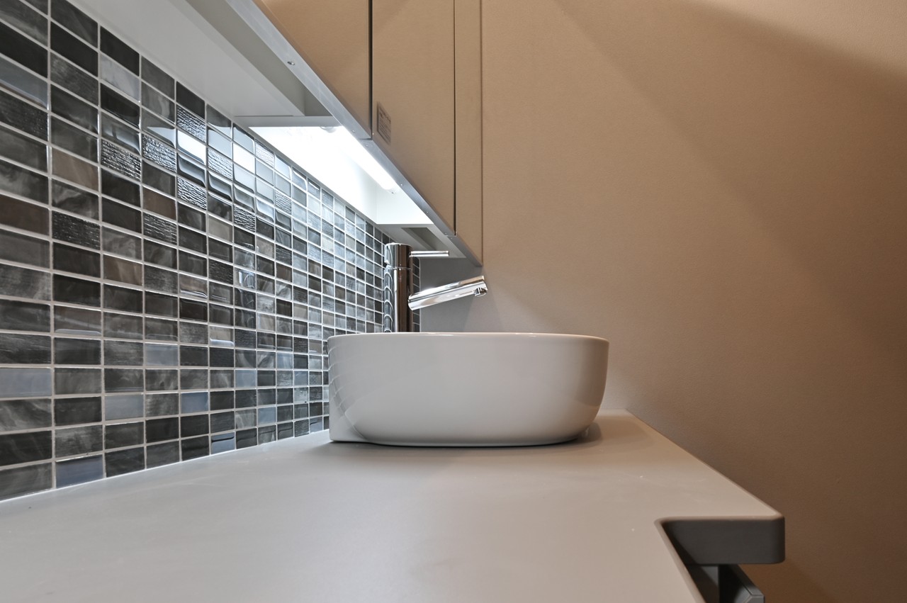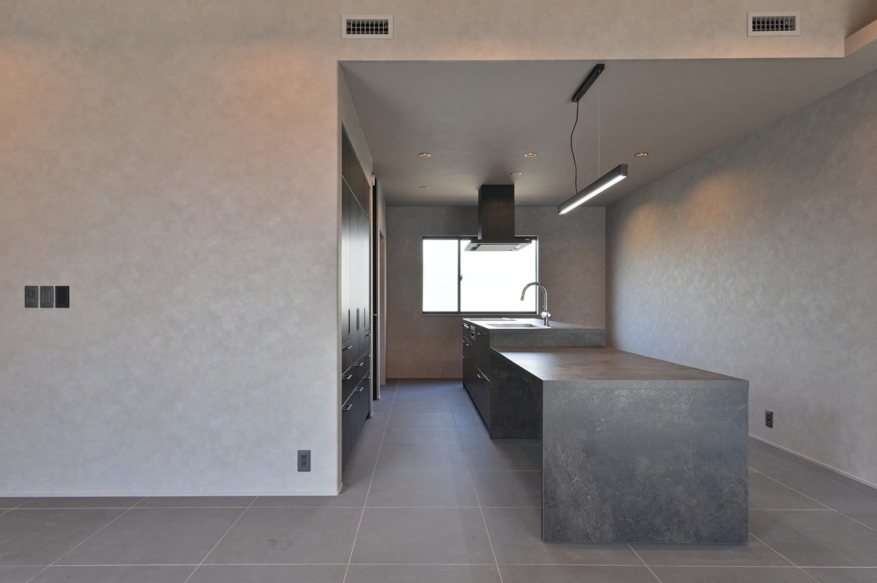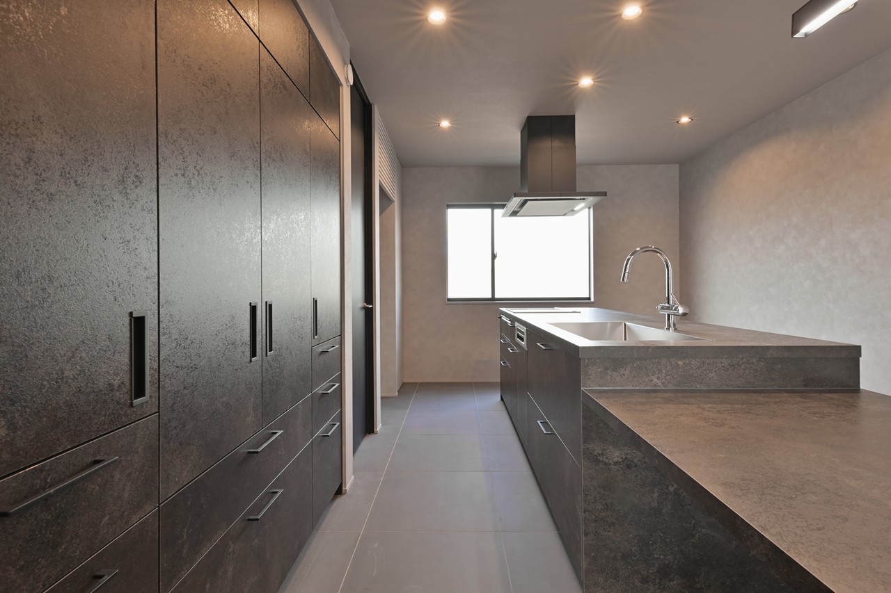 流行のグレイッシュな石目調が落ち着いた雰囲気を醸し出しています。