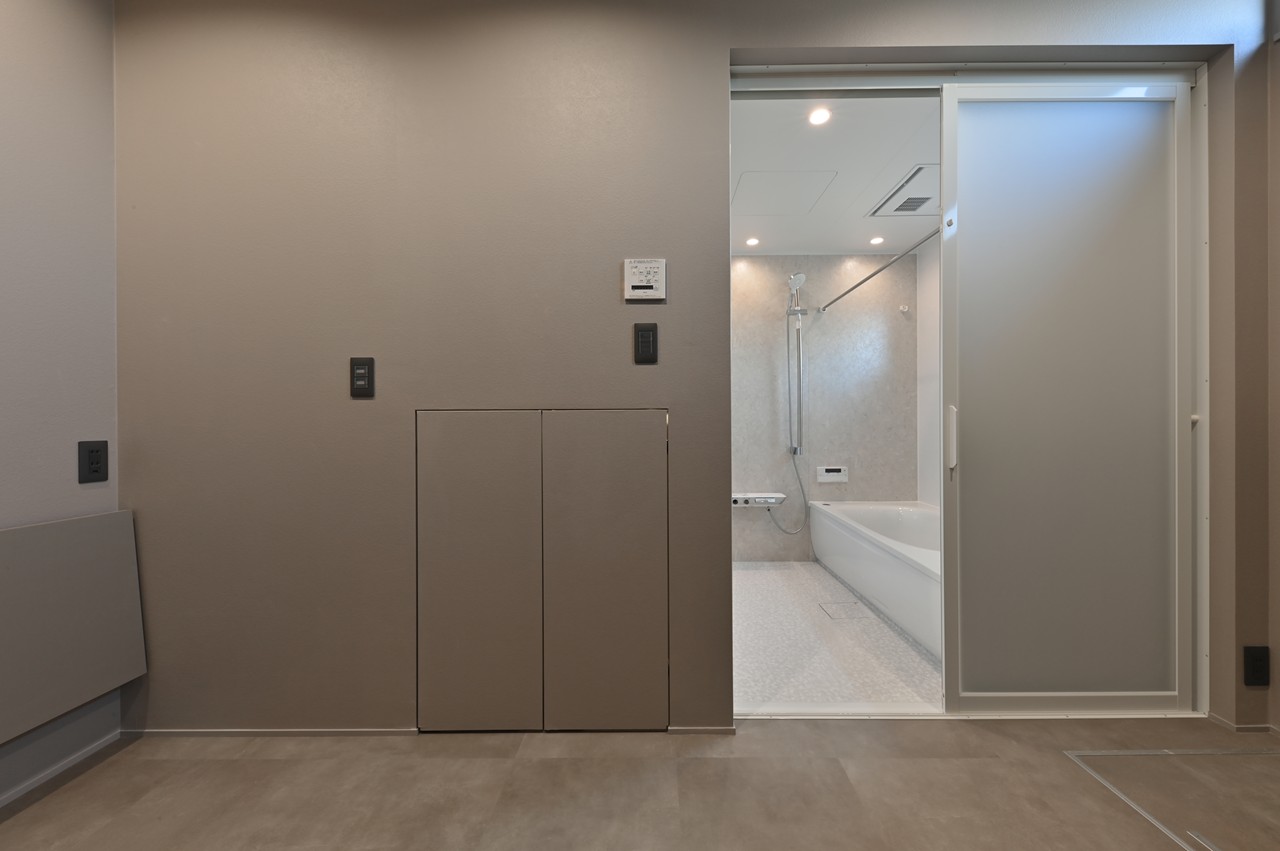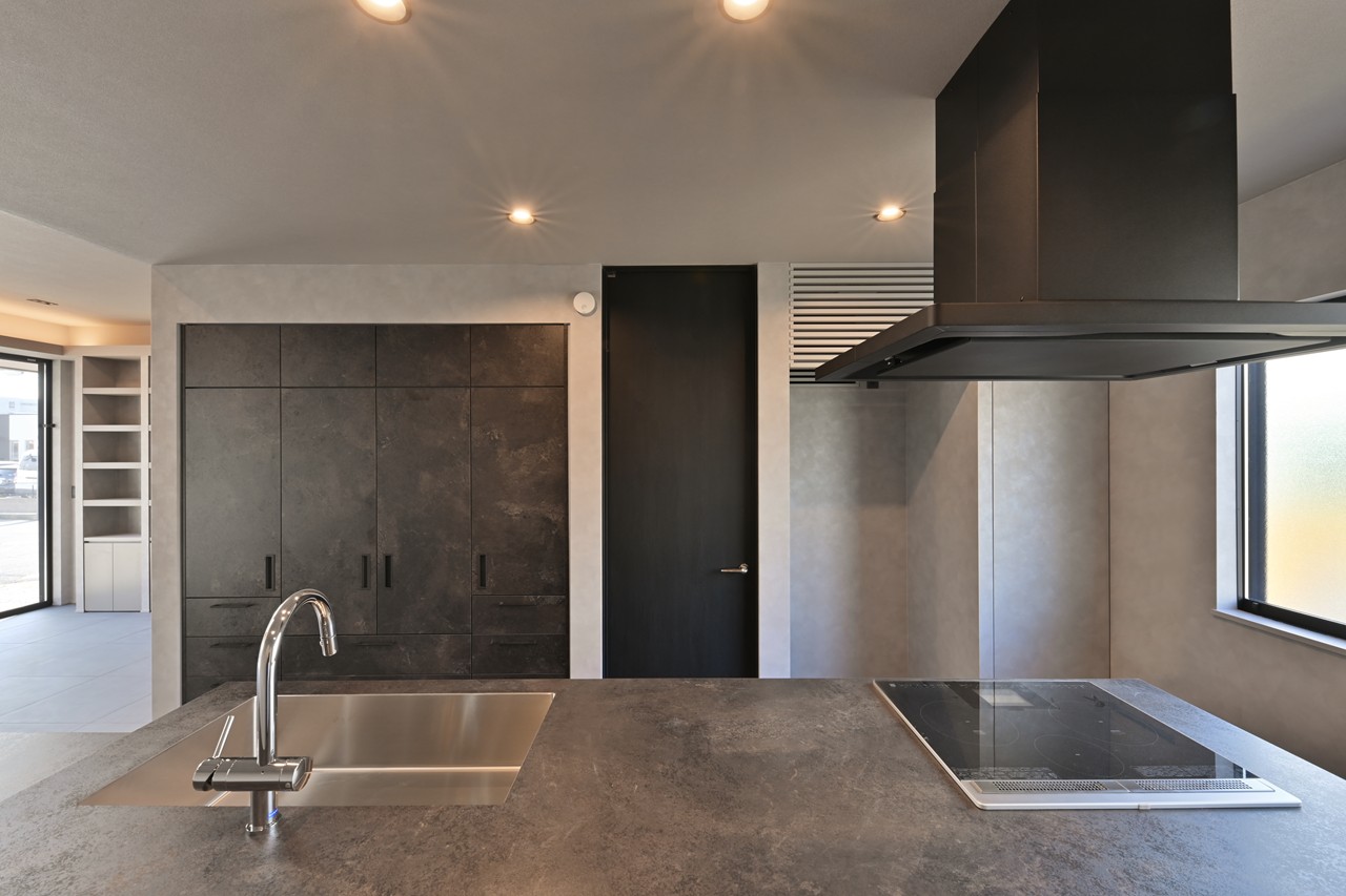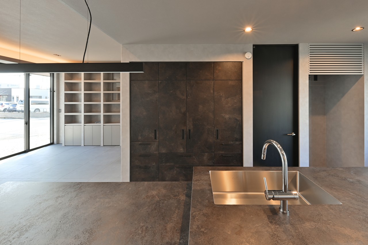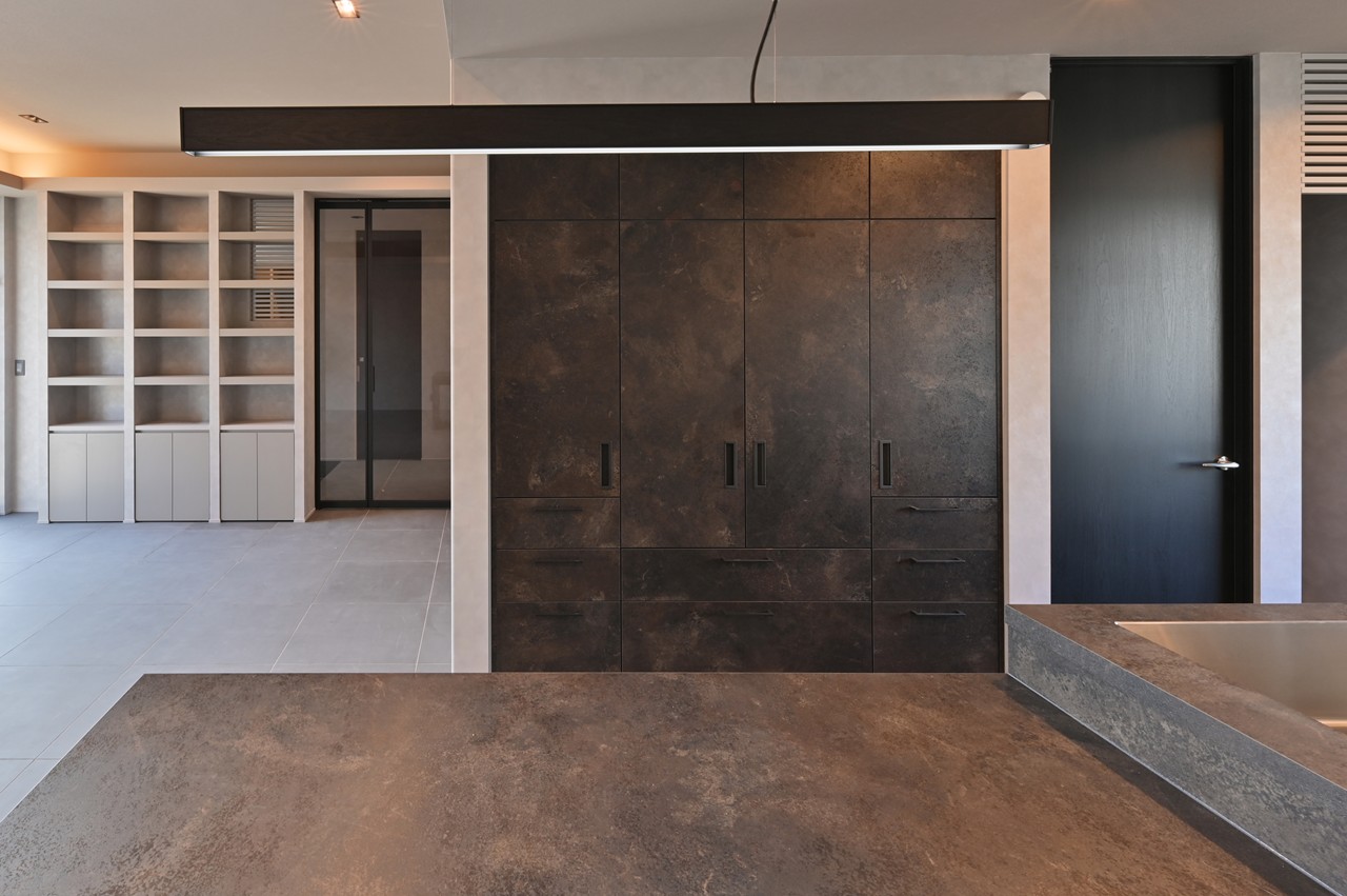 収納扉も同色でまとめ、さらなるハイスペックな親和性を発揮しています。
