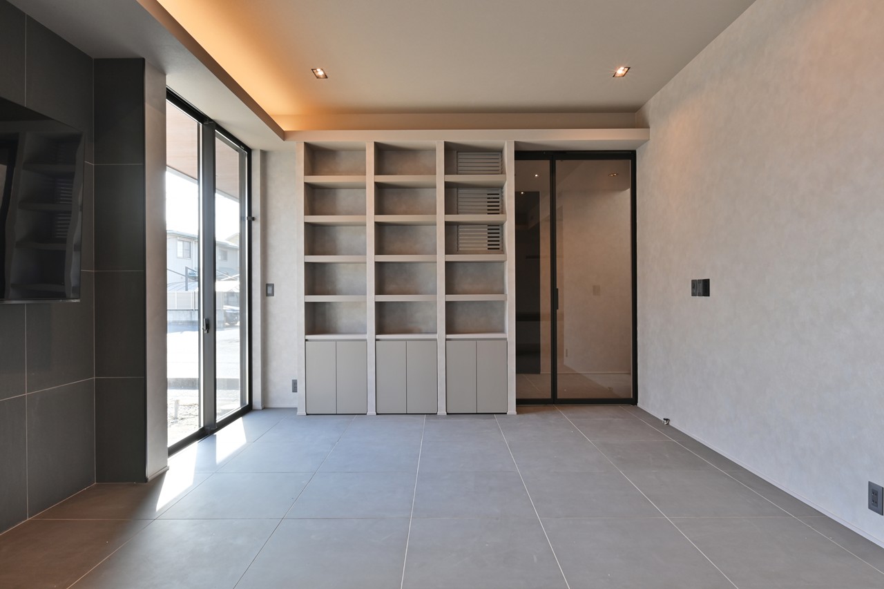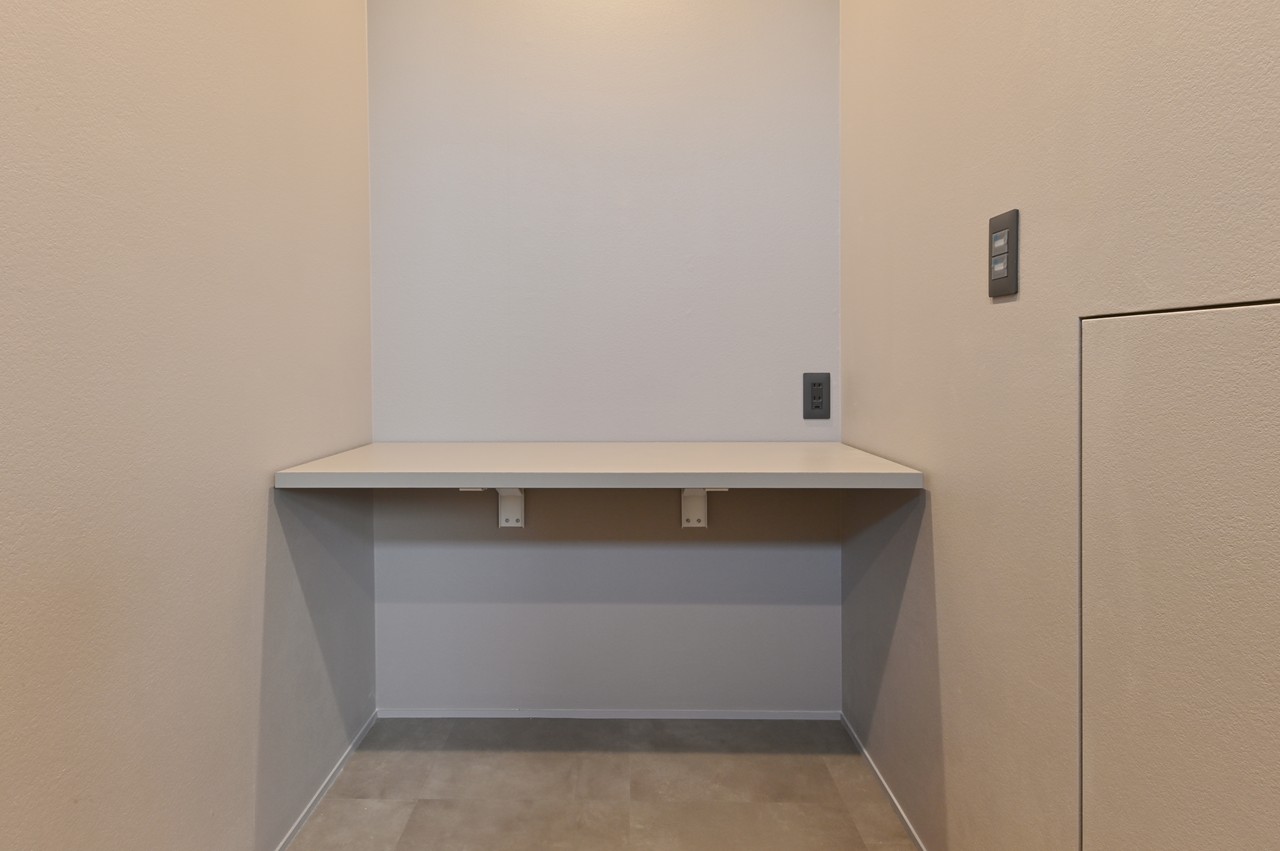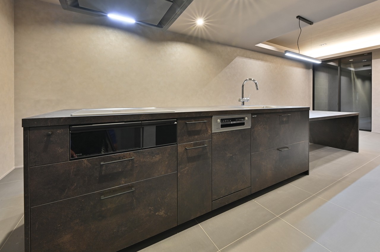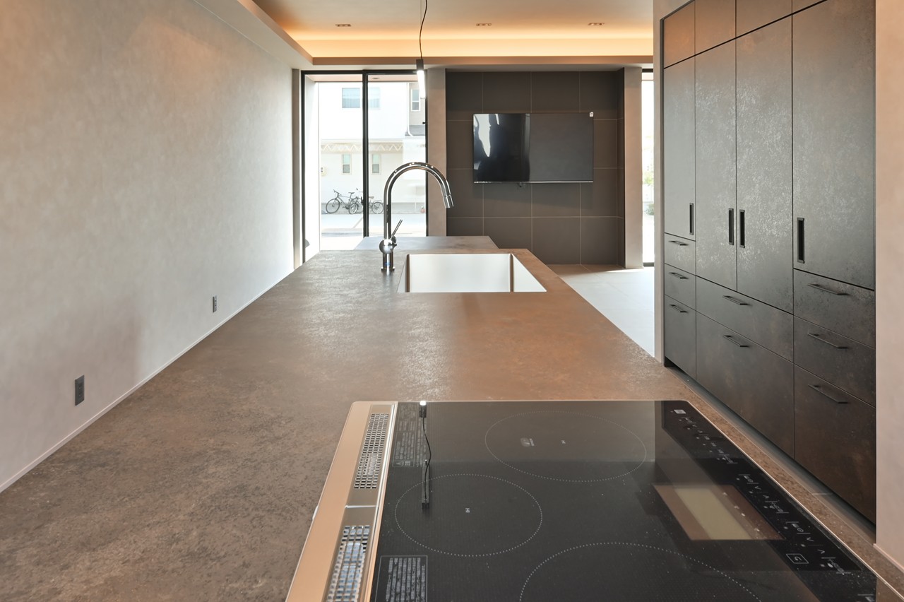 収納扉も同色でまとめ、さらなるハイスペックな親和性を発揮しています。