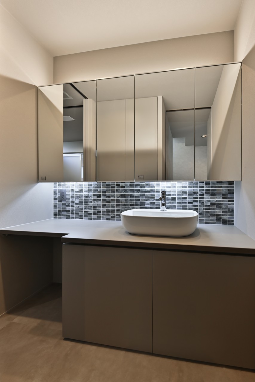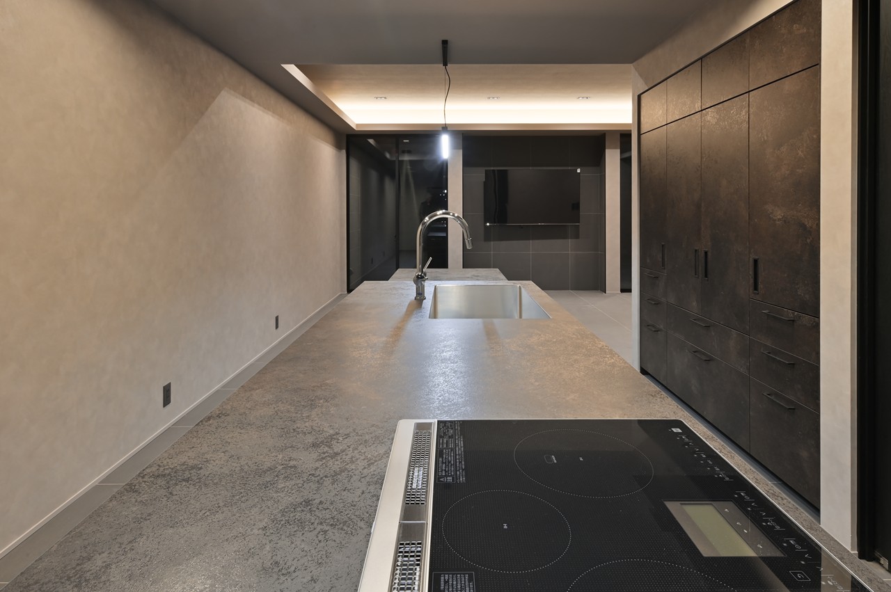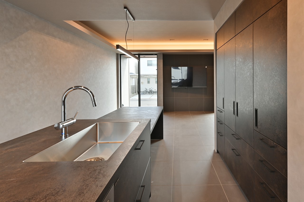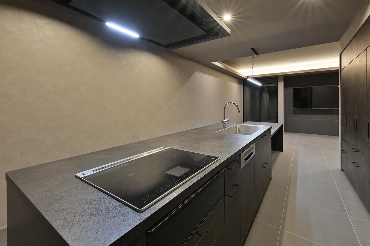 収納扉も同色でまとめ、さらなるハイスペックな親和性を発揮しています。