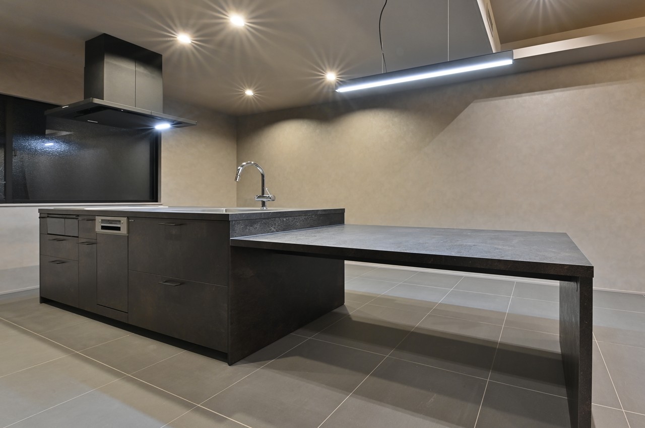 キッチンはダイニングスペースも併設した、オープン型のアイランドキッチン。