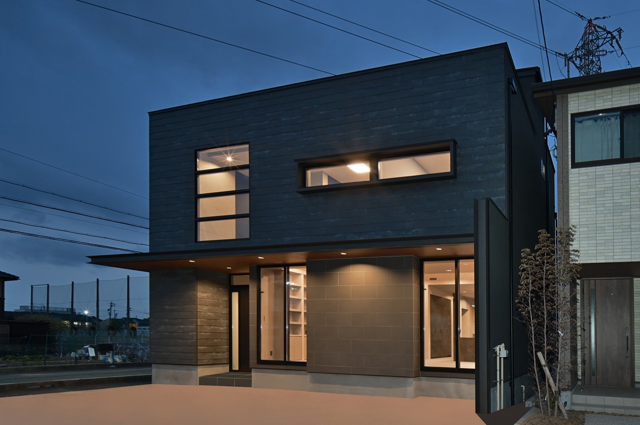 日中でも夜でも映えるシックな外観に出来上がりました。