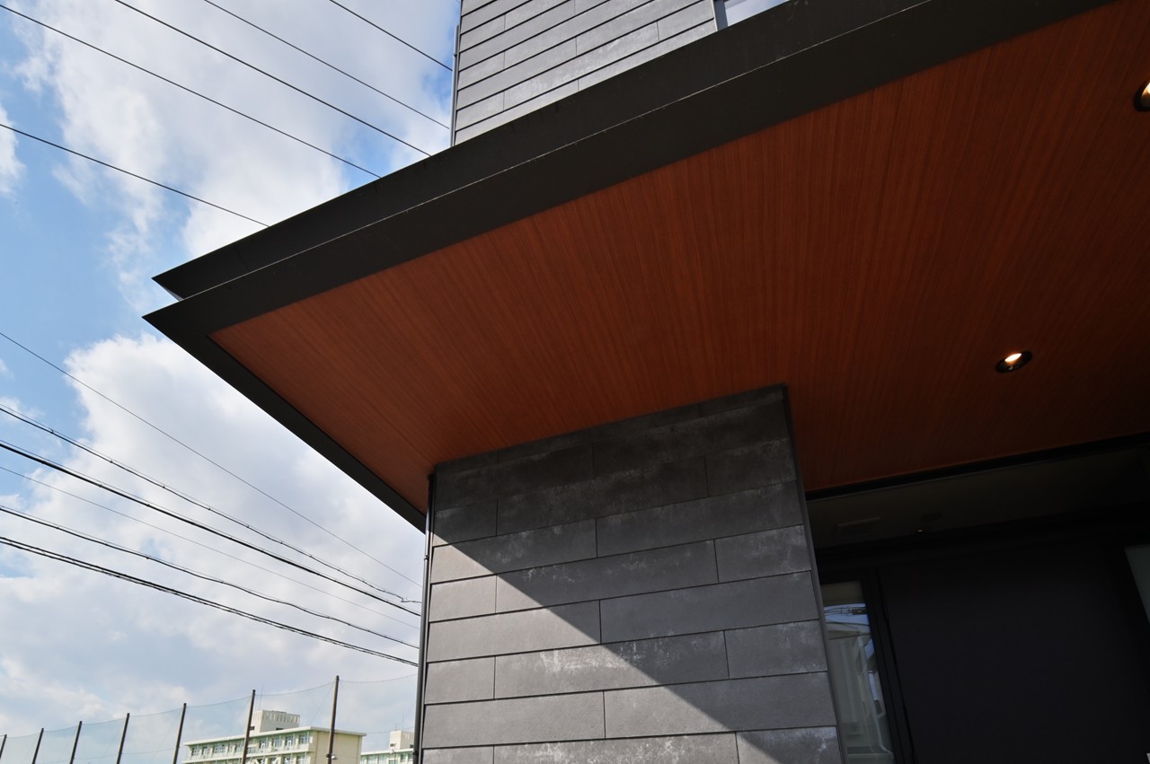 単純なスクエアではない意匠。大庇のあるファサードがここ最近流行りだしてきました。