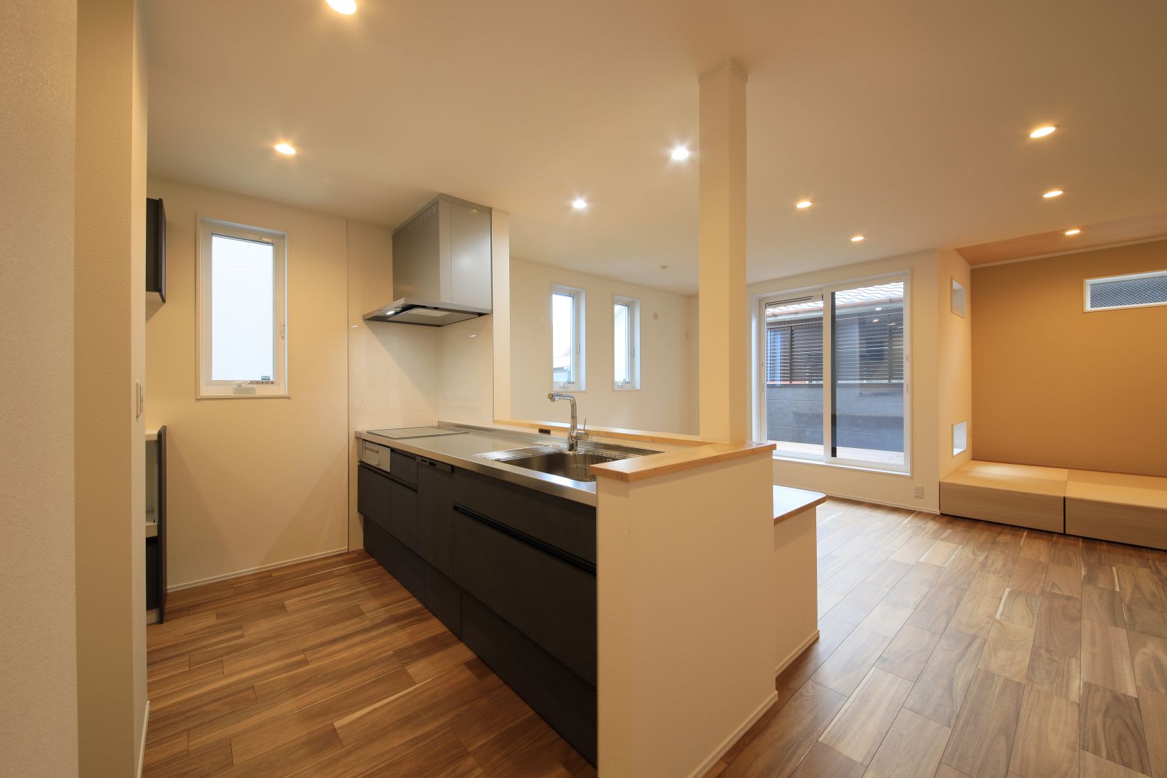 ステンレス天板キッチンも美しいです。