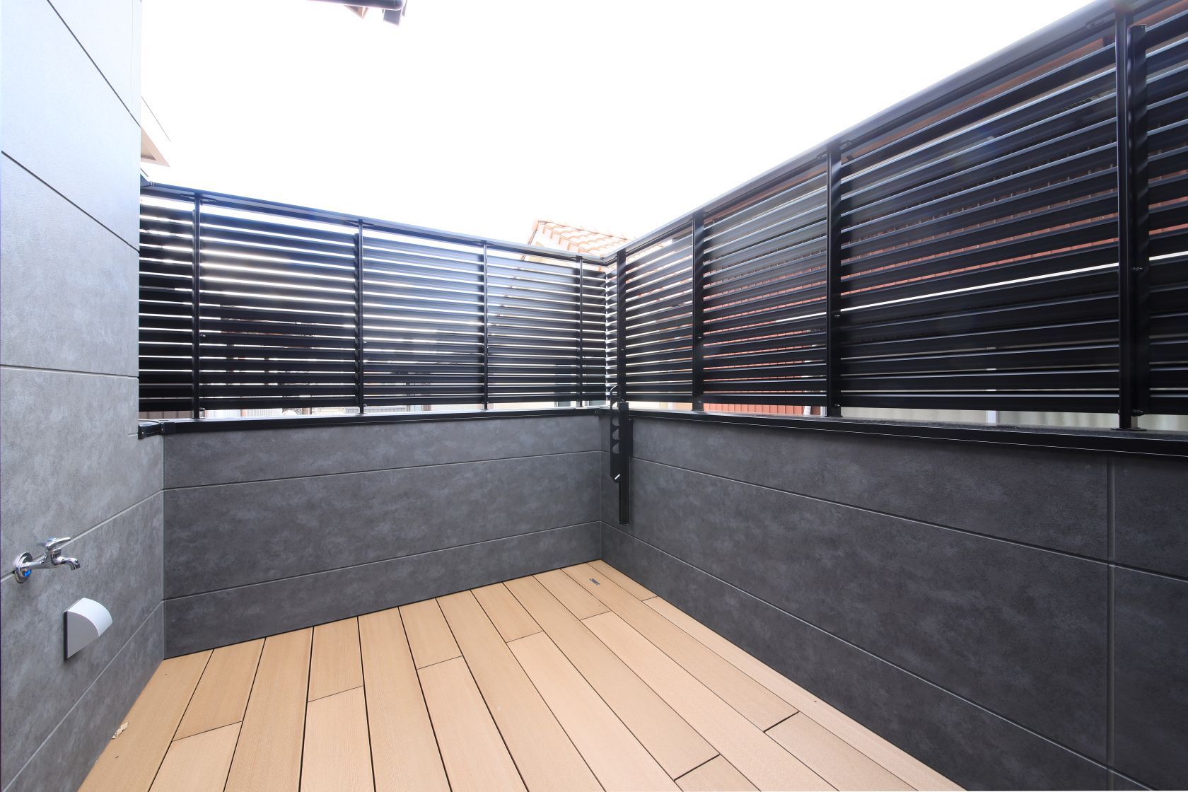 【木目調とブラック外壁のコントラストが印象的】